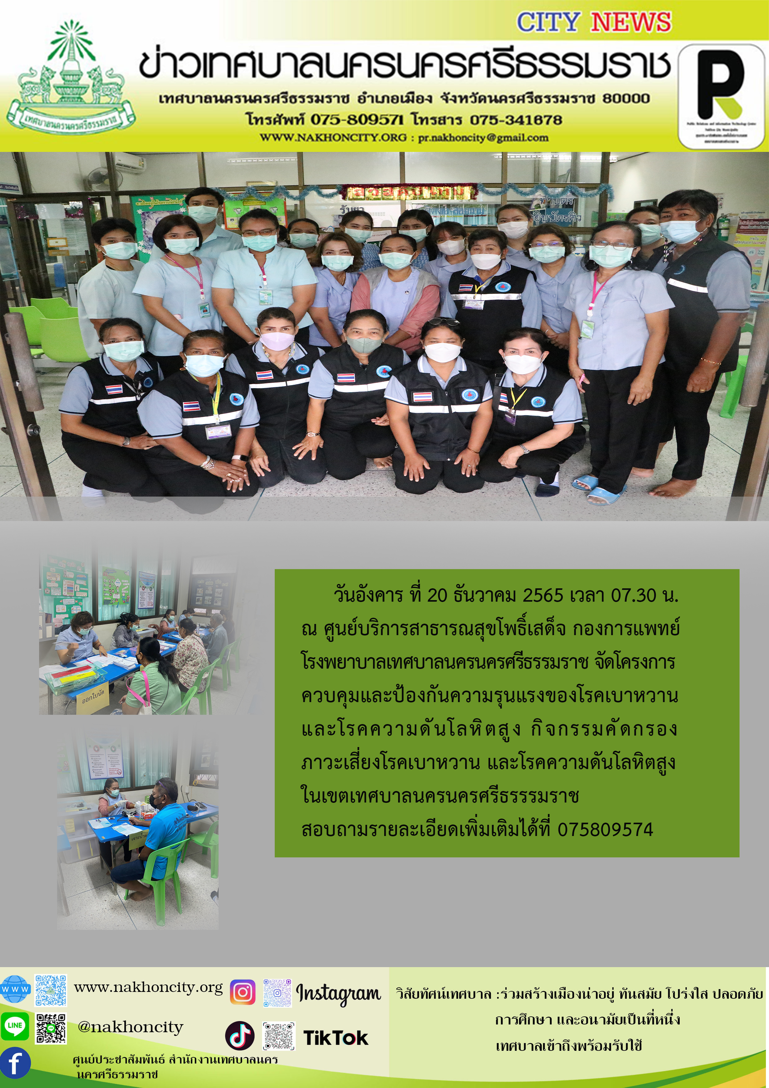 | กองการแพทย์ โรงพยาบาลเทศบาลนครนครศรีธรรมราช จัดโครงการควบคุมและป้องกันความรุนแรงของโรคเบาหวานและโรคความดันโลหิตสูง |