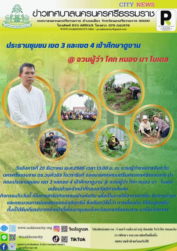 | ดร.วงศ์วชิร โอวรารินท์ รองนายกเทศมนตรีนครนครศรีธรรมราช นำคณะประธานชุมชน เขต 3 และเขต 4 เข้าศึกษาดูงาน @ จวนผู้ว่า โคก หนอง นา โมเดล |