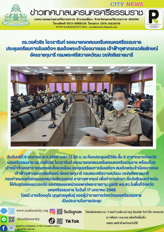 | ดร.วงศ์วชิร โอวรารินท์ รองนายกเทศมนตรีนครนครศรีธรรมราช ประชุมเตรียมการรับเสด็จฯ สมเด็จพระเจ้าน้องนางเธอ เจ้าฟ้าจุฬาภรณวลัยลักษณ์ อัครราชกุมารี กรมพระศรีสวางควัฒน วรขัตติยราชนารี |
