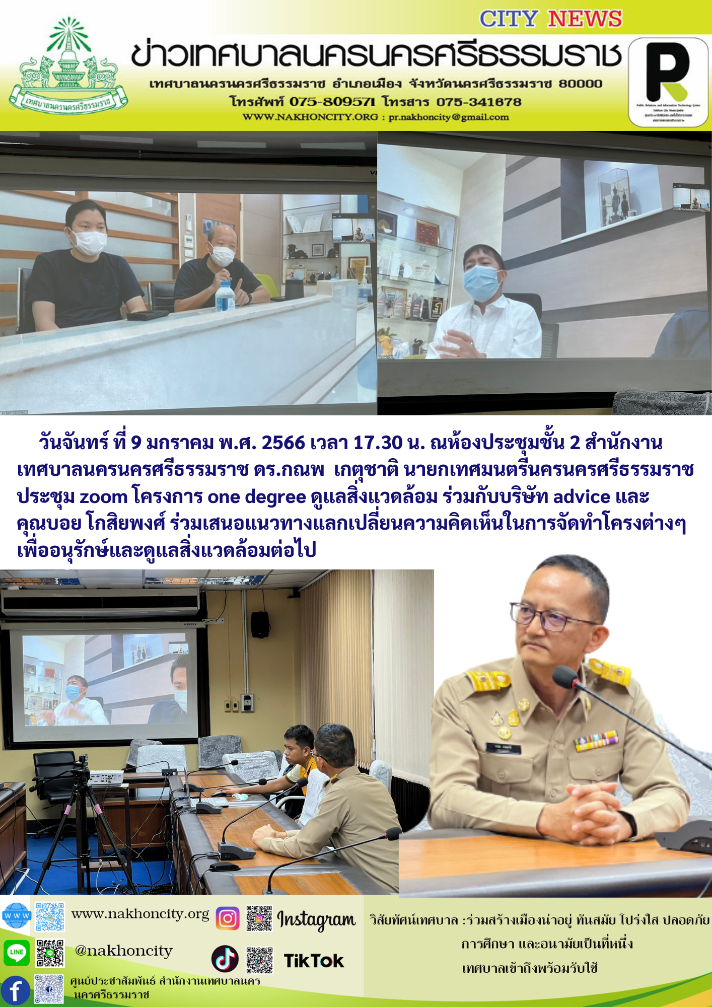 | ดร.กณพ เกตุชาติ นายกเทศมนตรีนครนครศรีธรรมราช ประชุม zoom โครงการ one degree ดูแลสิ่งแวดล้อม ร่วมกับบริษัท advice และ คุณบอย โกสิยพงศ์ |