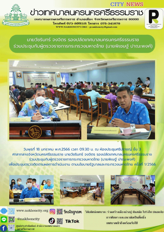 | นายวัชรินทร์ จงจิตร รองปลัดเทศบาลนครนครศรีธรรมราช ร่วมประชุมกับผู้ตรวจราชการกระทรวงมหาดไทย (นายพิเชษฐ์ ปาณะพงศ์) |