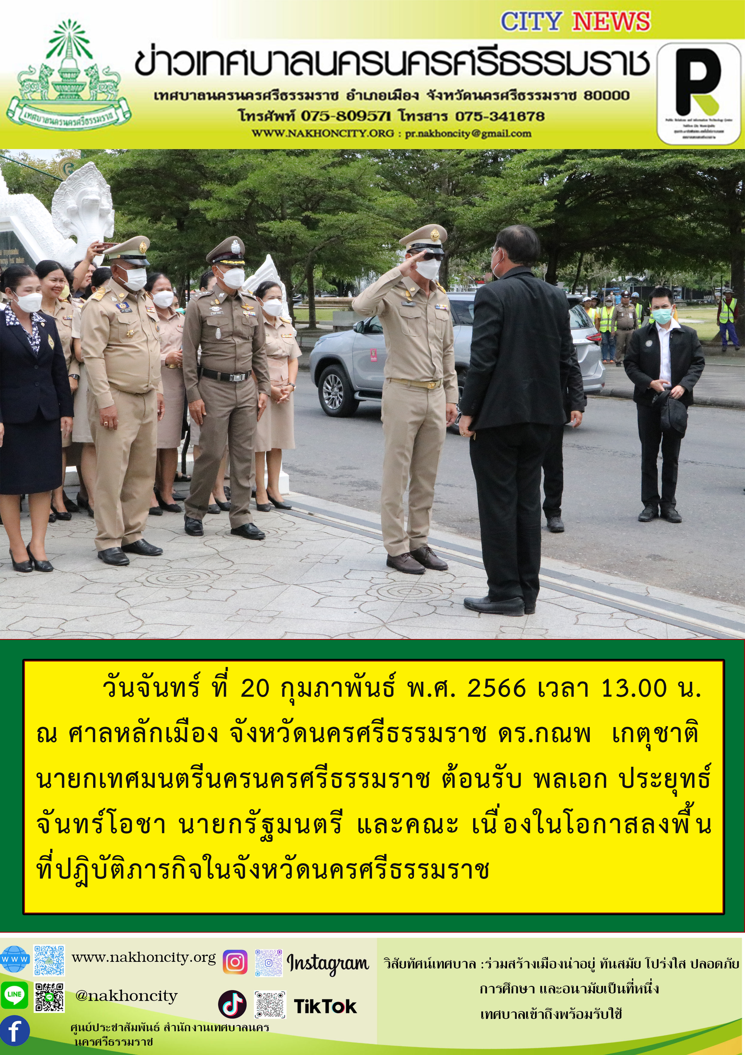 | นายกเทศมนตรีนครนครศรีธรรมราช ต้อนรับ พลเอก ประยุทธ์ จันทร์โอชา นายกรัฐมนตรี และคณะ เนื่องในโอกาสลงพื้นที่ปฎิบัติภารกิจใน จังหวัดนครศรีธรรมราช |
