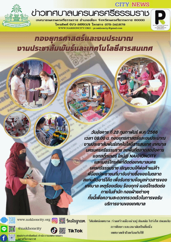 | กองยุทธศาสตร์และงบประมาณ งานประชาสัมพันธ์เทคโนโลยีสารสนเทศ เทศบาลนครนครศรีธรรมราช ลงพื้นที่ตลาดสดอังคาร แจกสติ๊กเกอร์ ไลน์@ NAKHONCITY |