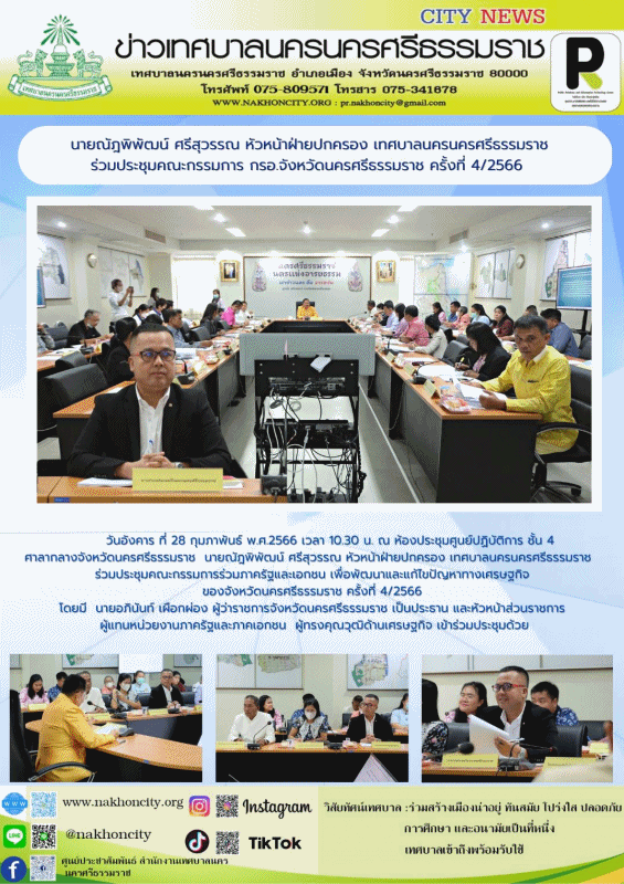 | นายณัฎพิพัฒน์ ศรีสุวรรณ หัวหน้าฝ่ายปกครอง ร่วมประชุมคณะกรรมการ กรอ.จังหวัดนครศรีธรรมราช หารือการบูรณาการแก้ไขปัญหาเศรษฐกิจ พร้อมรับทราบผลการดำเนินงานที่ผ่านมา |