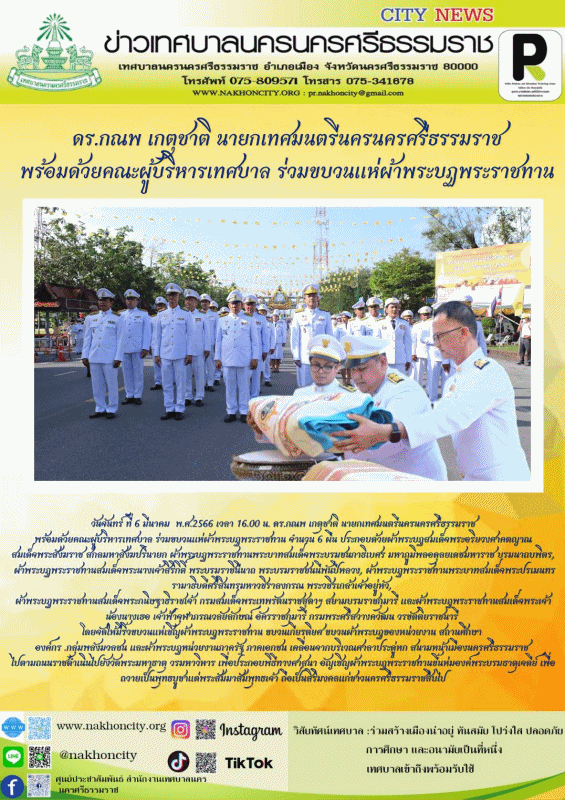 | ดร.กณพ เกตุชาติ นายกเทศมนตรีนครนครศรีธรรมราช พร้อมด้วยคณะผู้บริหารเทศบาล ร่วมขบวนแห่ผ้าพระบฏพระราชทาน |