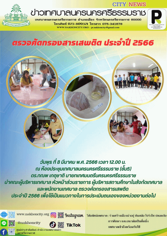 | เทศบาลนครนครศรีธรรมราช ตรวจคัดกรองสารเสพติด ประจำปี 2566 |
