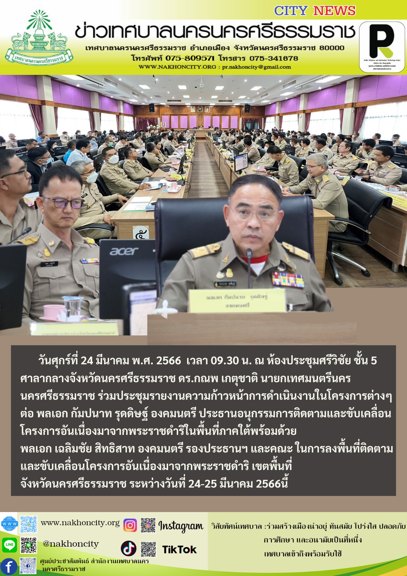 | ดร.กณพ เกตุชาติ นายกเทศมนตรีนครนครศรีธรรมราช ร่วมประชุมรายงานความก้าวหน้าการดำเนินงานในโครงการอันเนื่องมาจากพระราชดำริ |