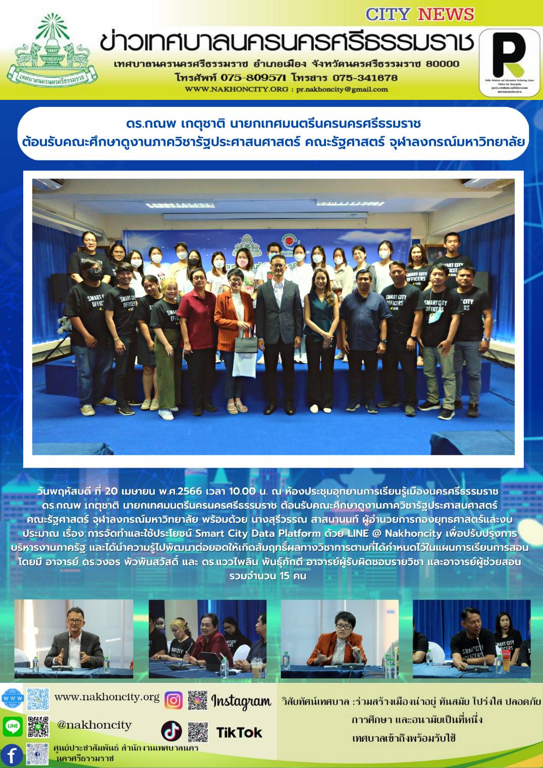 | ดร.กณพ เกตุชาติ นายกเทศมนตรีนครนครศรีธรมราช ต้อนรับคณะศึกษาดูงานภาควิชารัฐประศาสนศาสตร์ คณะรัฐศาสตร์ จุฬาลงกรณ์มหาวิทยาลัย |