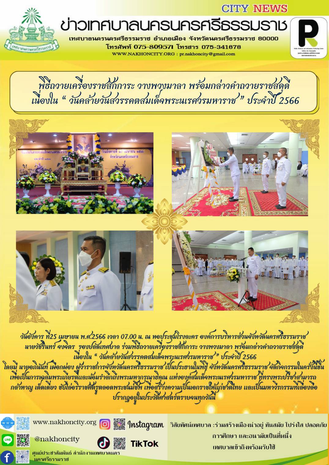 | พิธีถวายเครื่องราชสักการะ วางพวงมาลา พร้อมกล่าวคำถวายราชสดุดี เนื่องใน “ วันคล้ายวันสวรรคตสมเด็จพระนเรศวรมหาราช ” ประจำปี 2566 |