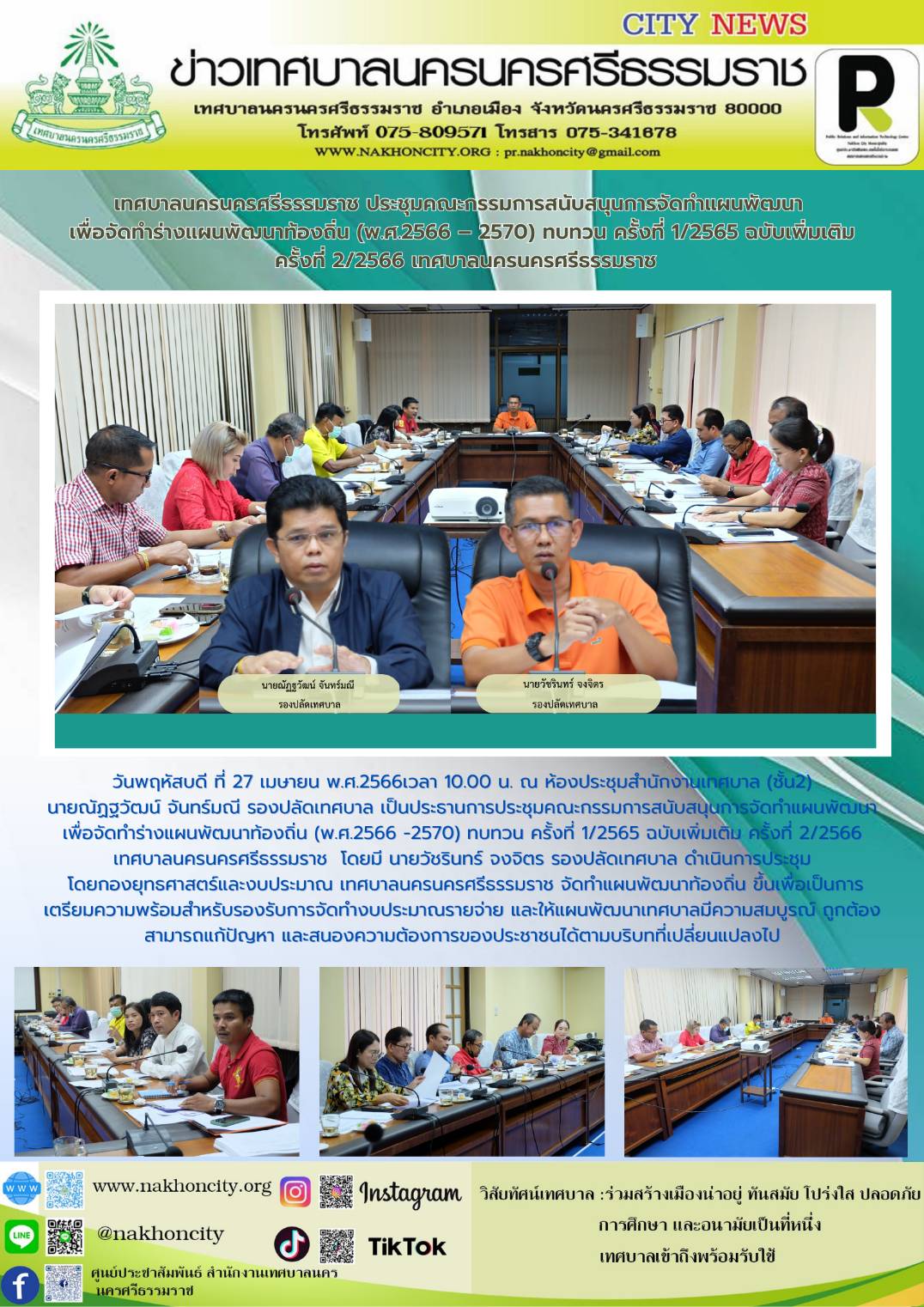 | เทศบาลนครนครศรีธรรมราช ประชุมคณะกรรมการสนับสนุนการจัดทำแผนพัฒนา เพื่อจัดทำร่างแผนพัฒนาท้องถิ่น (พ.ศ.2566 – 2570) ทบทวน ครั้งที่ 1/2565 ฉบับเพิ่มเติม ครั้งที่ 2/2566 เทศบาลนครนครศรีธรรมราช |