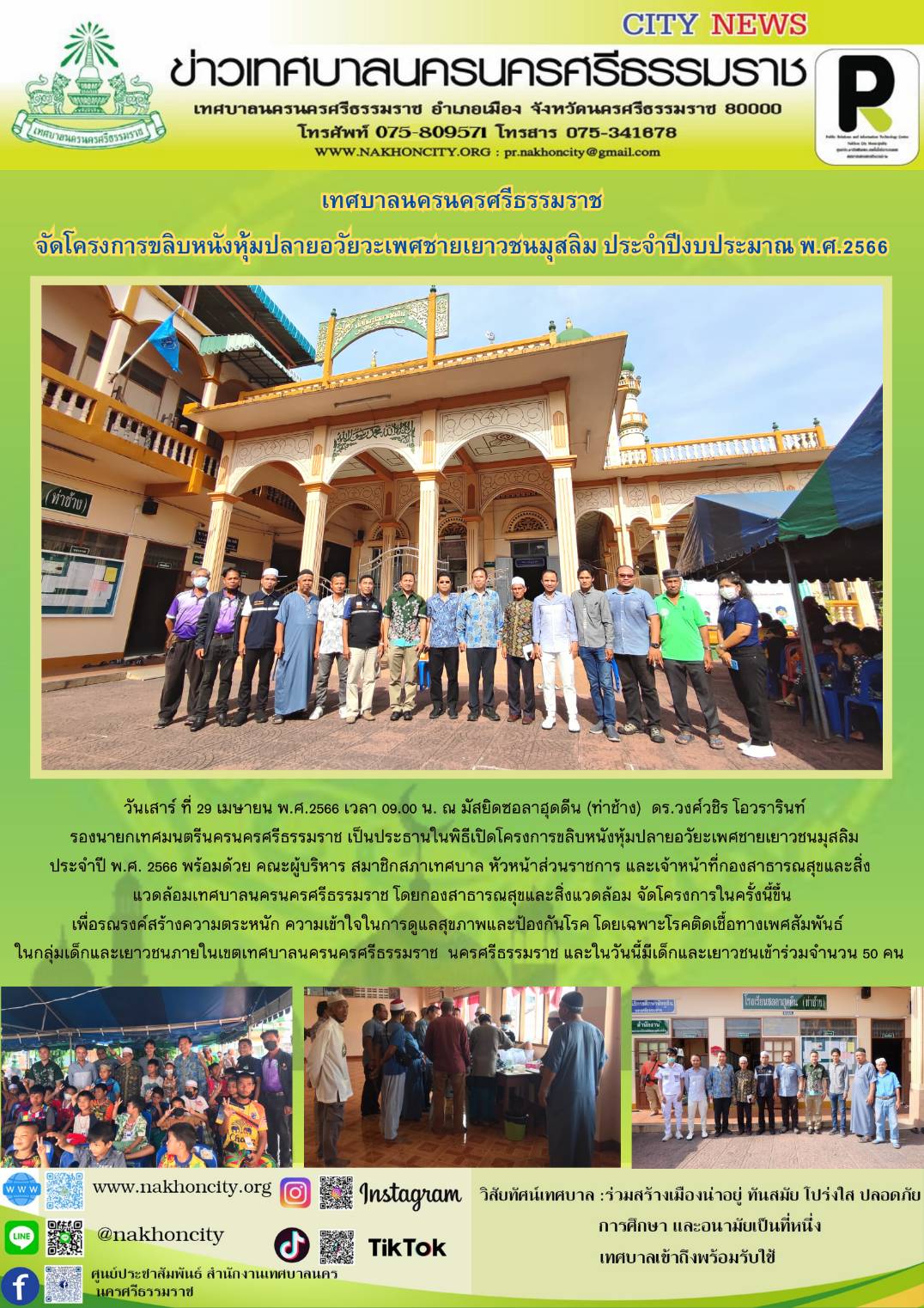 | เทศบาลนครนครศรีธรรมราช จัดโครงการขลิบหนังหุ้มปลายอวัยวะเพศชายเยาวชนมุสลิม ประจำปีงบประมาณ พ.ศ.2566 |
