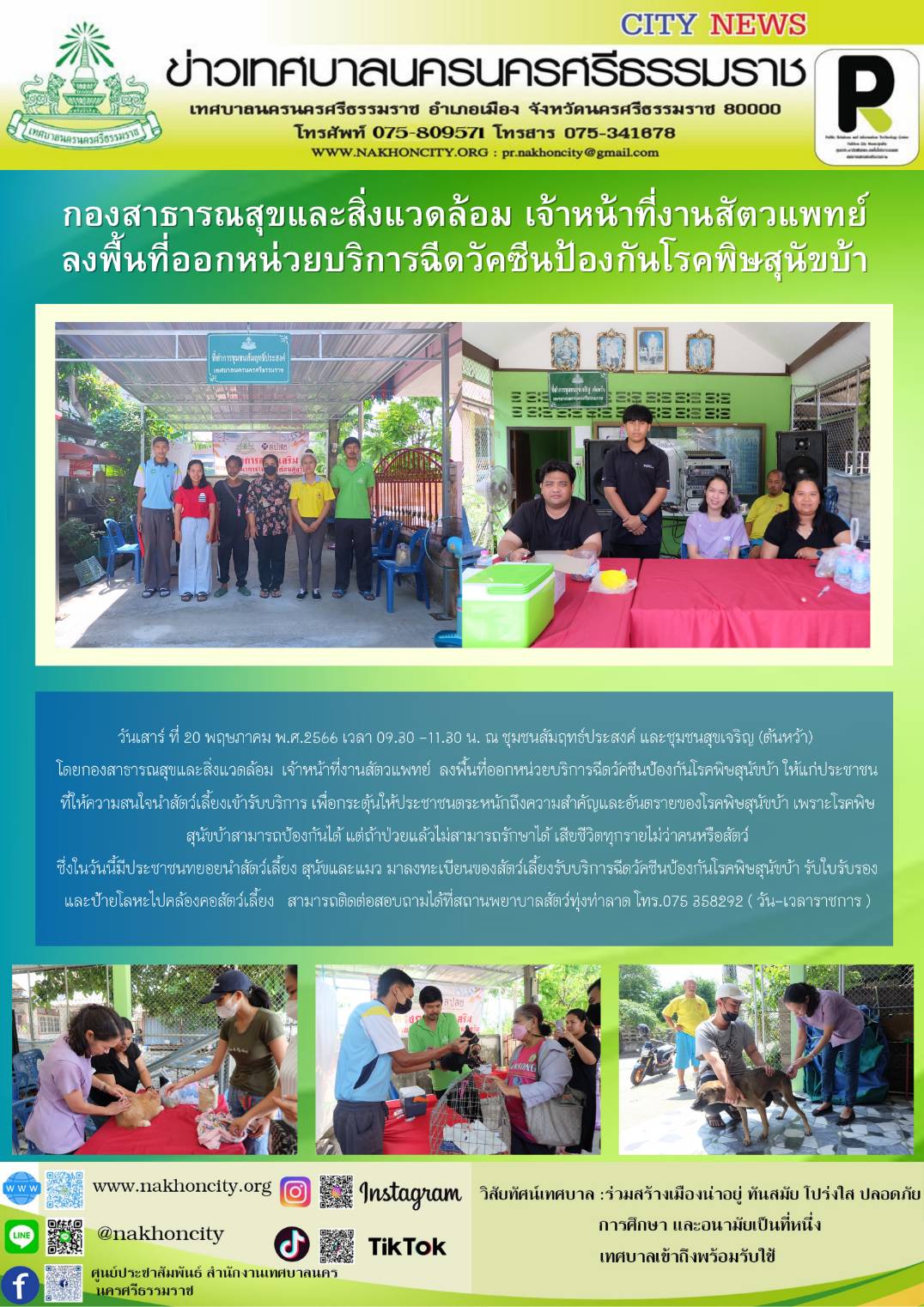 | กองสาธารณสุขและสิ่งแวดล้อม เจ้าหน้าที่งานสัตวแพทย์ ลงพื้นที่ออกหน่วยบริการฉีดวัคซีนป้องกันโรคพิษสุนัขบ้า |
