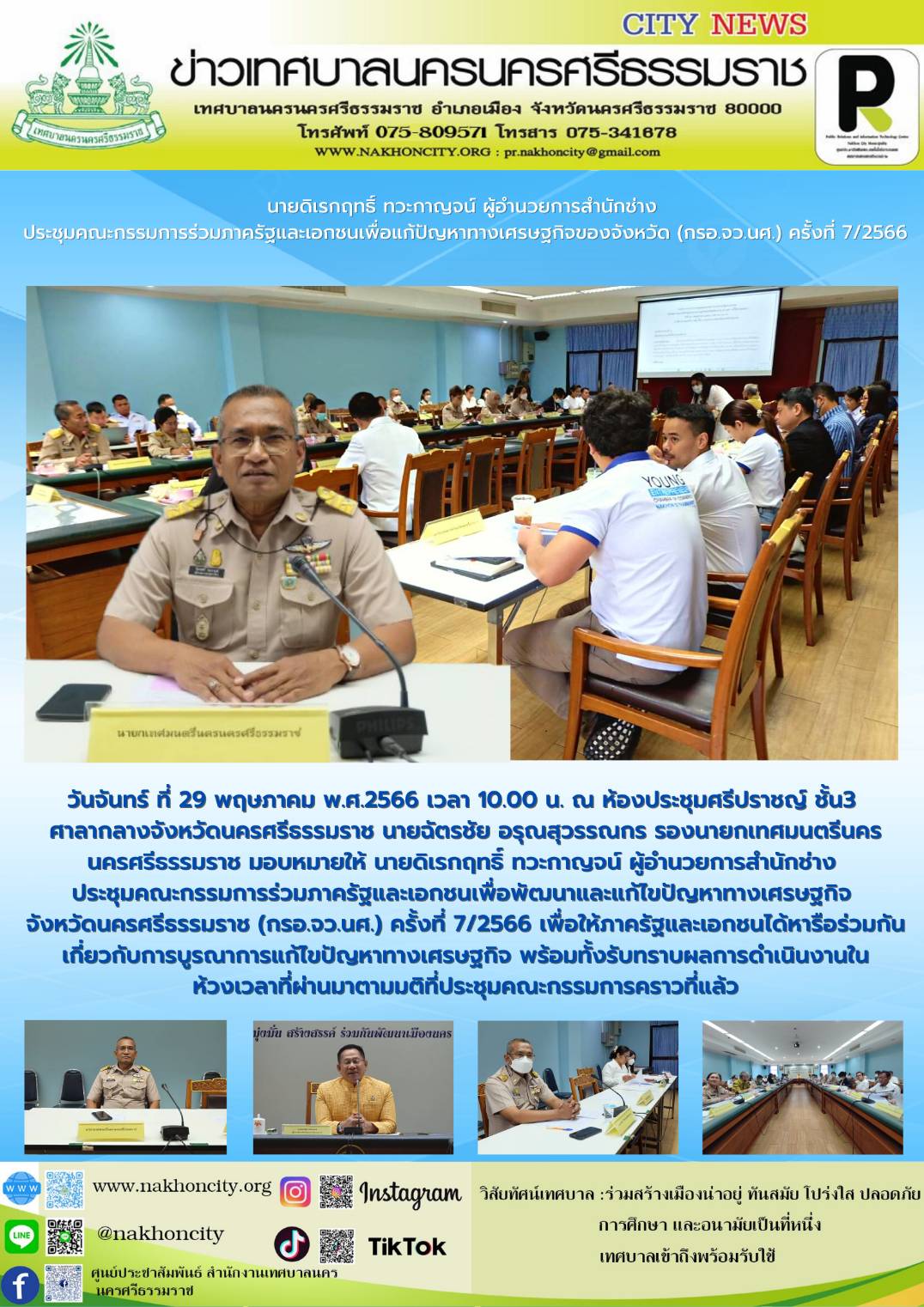 | นายดิเรกฤทธิ์ ทวะกาญจน์ ผู้อำนวยการสำนักช่าง ประชุมคณะกรรมการร่วมภาครัฐและเอกชนเพื่อแก้ปัญหาทางเศรษฐกิจของจังหวัด (กรอ.จว.นศ.) ครั้งที่ 7/2566 |