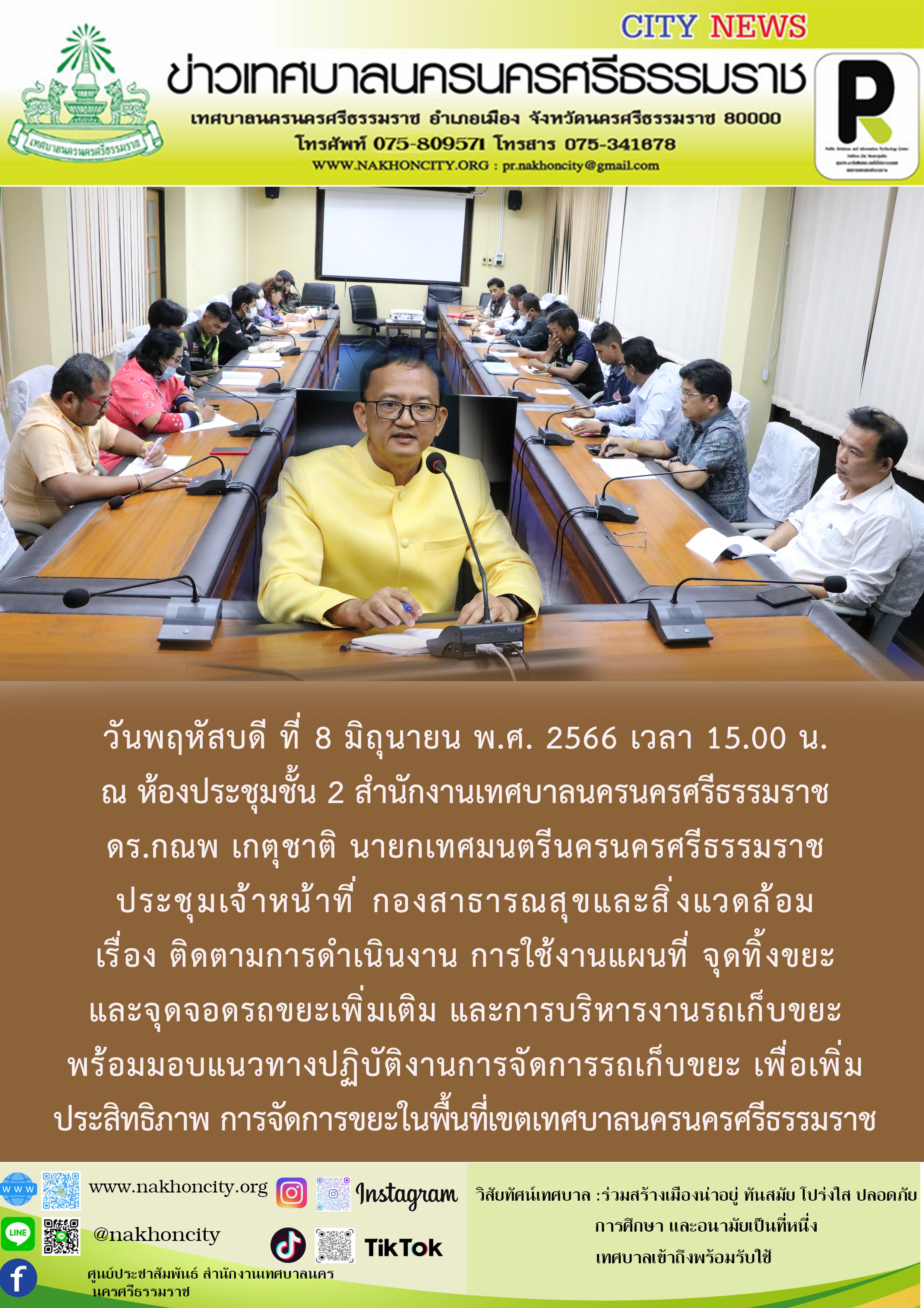 | วันพฤหัสบดี ที่ 8 มิถุนายน พ.ศ. 2566 เวลา 15.00 น. ณ ห้องประชุมชั้น 2 สำนักงานเทศบาลนครนครศรีธรรมราช ภาพ//ข่าว//ไกรสิทธิ |