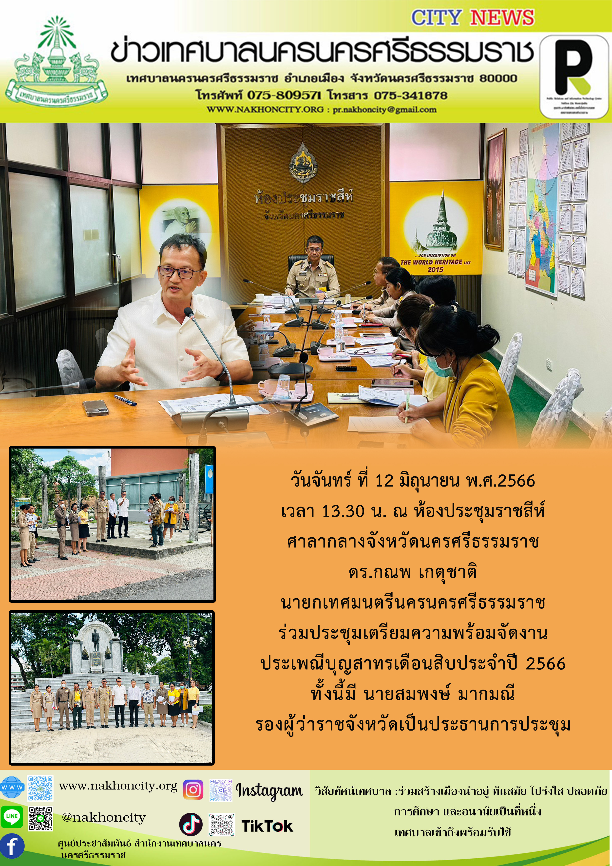 | ดร.กณพ เกตุชาติ นายกเทศมนตรีนครนครศรีธรรมราช ร่วมประชุมเตรียมความพร้อมจัดงานประเพณีบุญสาทรเดือนสิบประจำปี 2566 |