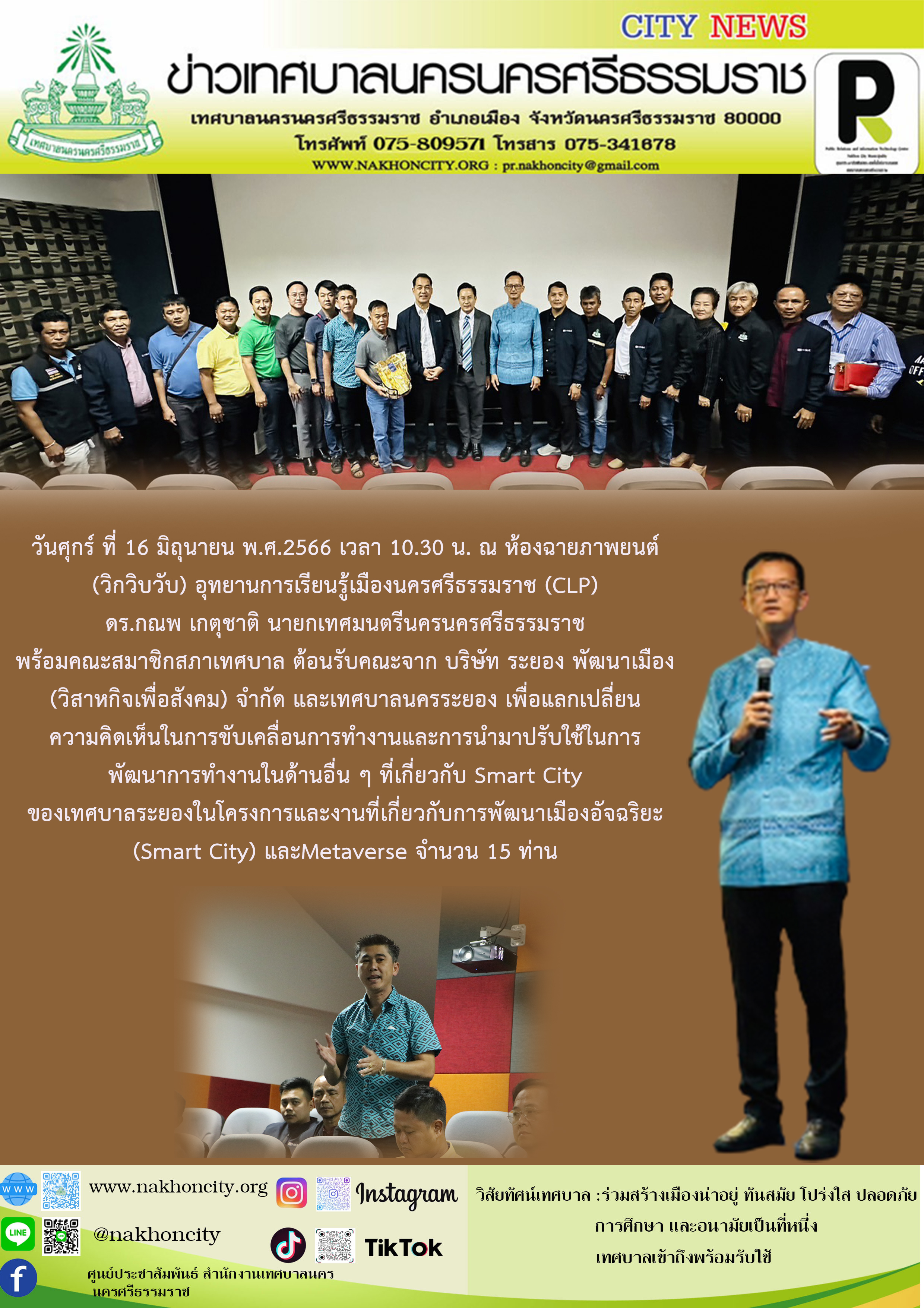 | ดร.กณพ เกตุชาติ นายกเทศมนตรีนครนครศรีธรรมราช พร้อมคณะสมาชิกสภาเทศบาล ต้อนรับคณะจาก บริษัท ระยอง พัฒนาเมือง (วิสาหกิจเพื่อสังคม) จำกัด และเทศบาลนครระยอง |