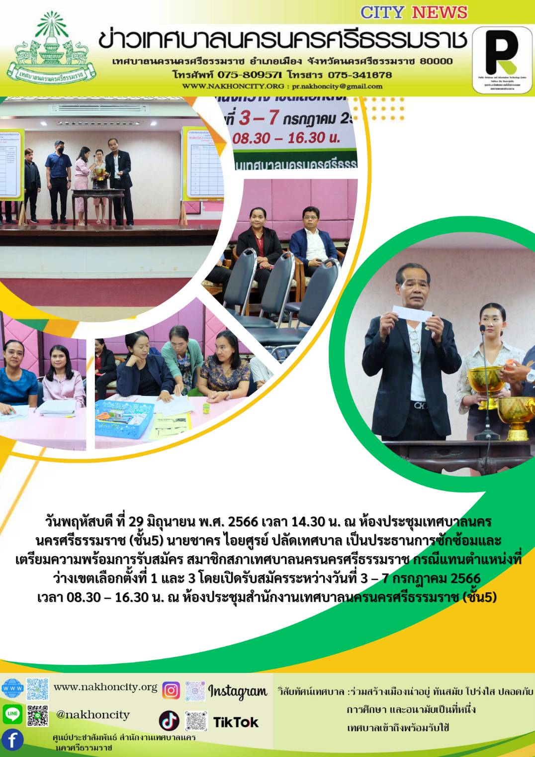 | นายชาคร ไอยศูรย์ ปลัดเทศบาล เป็นประธานการซักซ้อมและเตรียมความพร้อมการรับสมัคร สมาชิกสภาเทศบาลนครนครศรีธรรมราช |