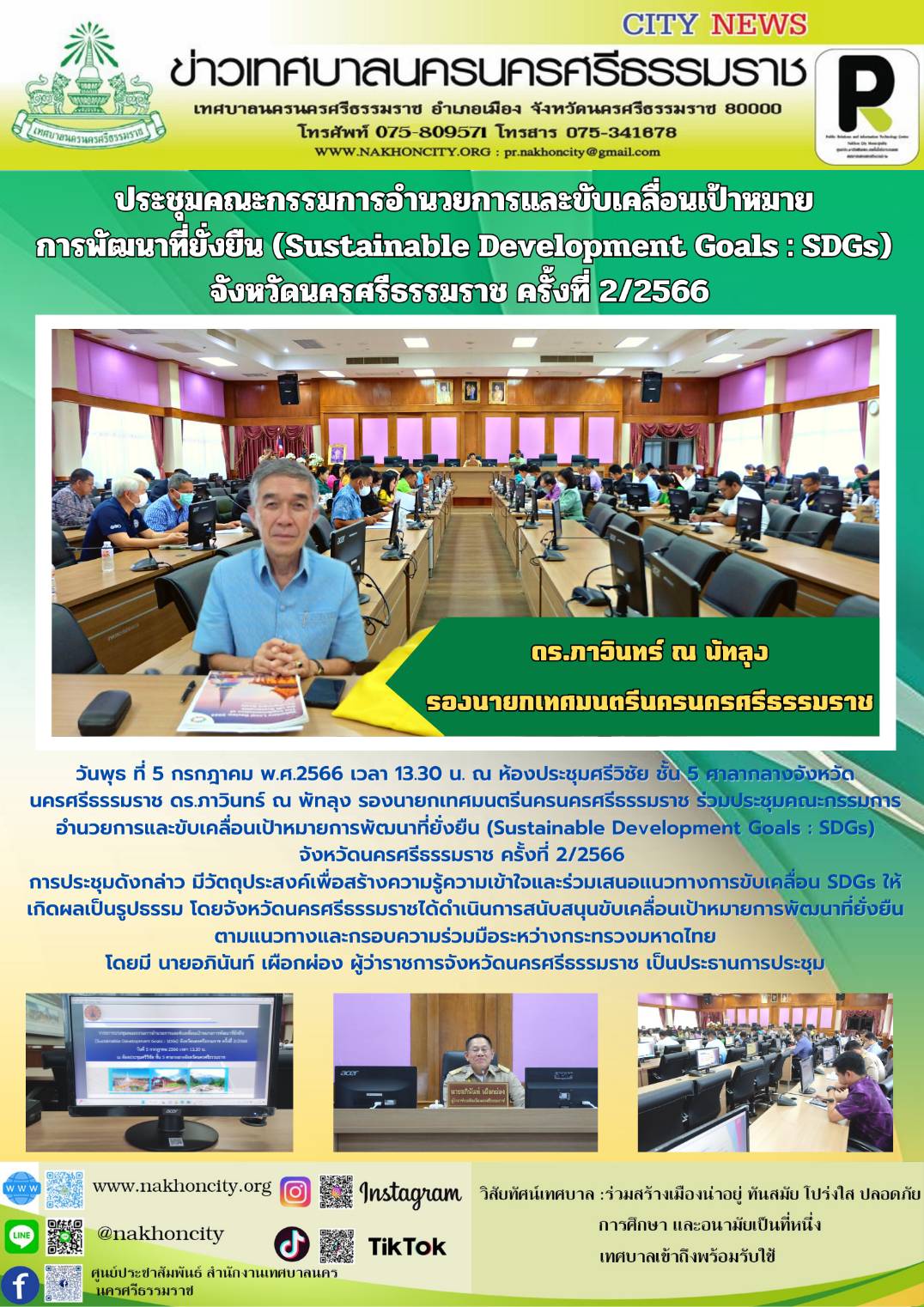 | ดร.ภาวินทร์ ณ พัทลุง รองนายกเทศมนตรีนครนครศรีธรรมราช ร่วมประชุมคณะกรรมการอำนวยการและขับเคลื่อนเป้าหมายการพัฒนาที่ยั่งยืน (Sustainable Development Goals : SDGs) จังหวัดนครศรีธรรมราช ครั้งที่ 2/2566 |