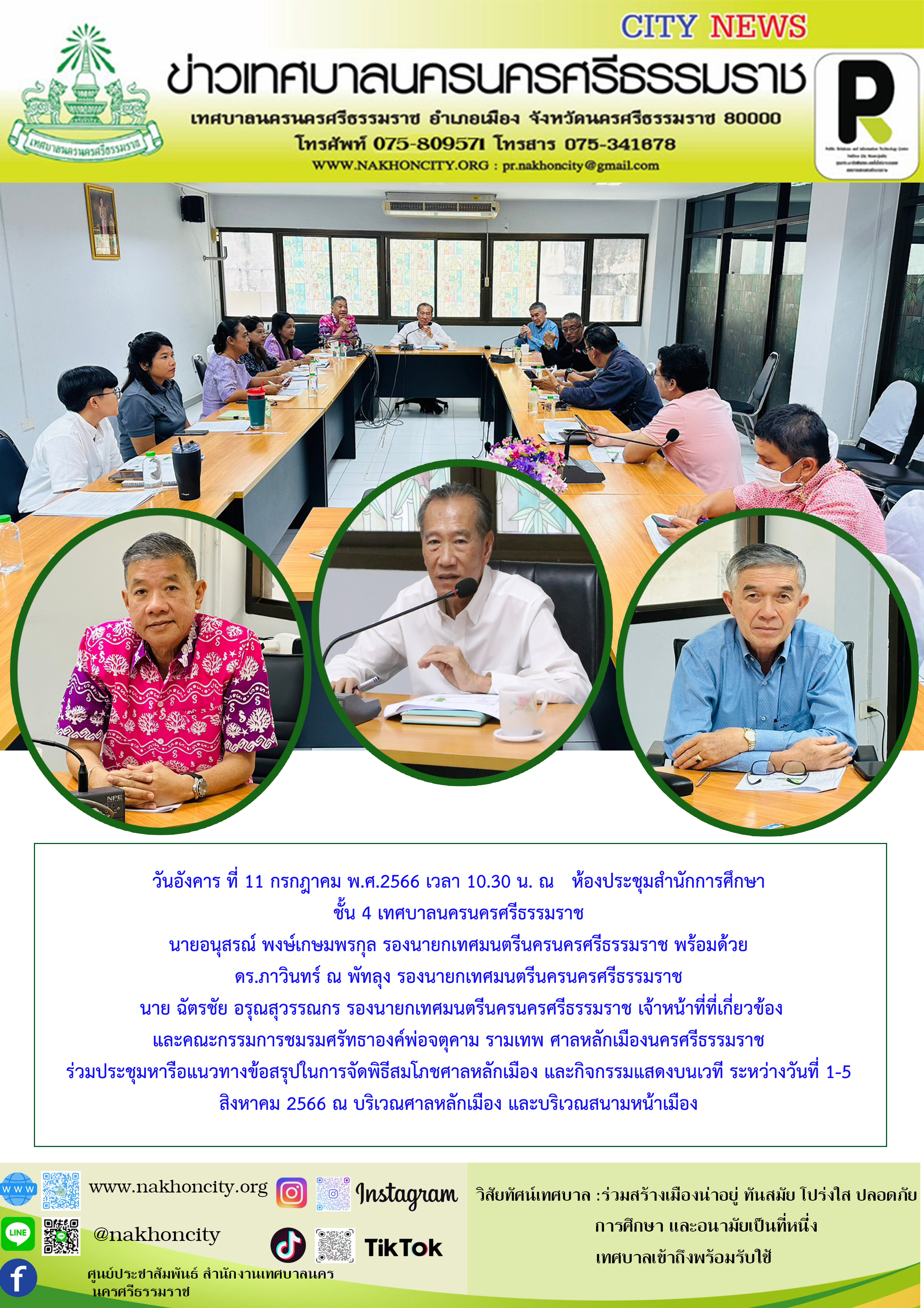 | วันอังคาร ที่ 11 กรกฎาคม พ.ศ.2566 เวลา 10.30 น. ณ   ห้องประชุมสำนักการศึกษา ชั้น 4 เทศบาลนครนครศรีธรรมราช
