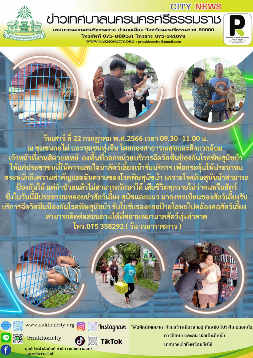 | กองสาธารณสุขและสิ่งแวดล้อมงานสัตวแพทย์ ลงพื้นที่ออกหน่วยบริการฉีดวัคซีนป้องกันโรคพิษสุนัขบ้า |