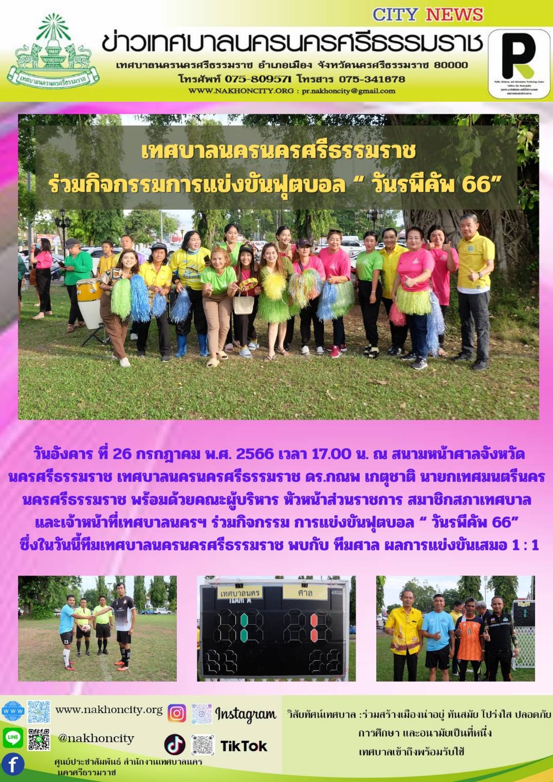 | เทศบาลนครนครศรีธรรมราช ร่วมกิจกรรม การแข่งขันฟุตบอล “ วันรพีคัพ 66” |