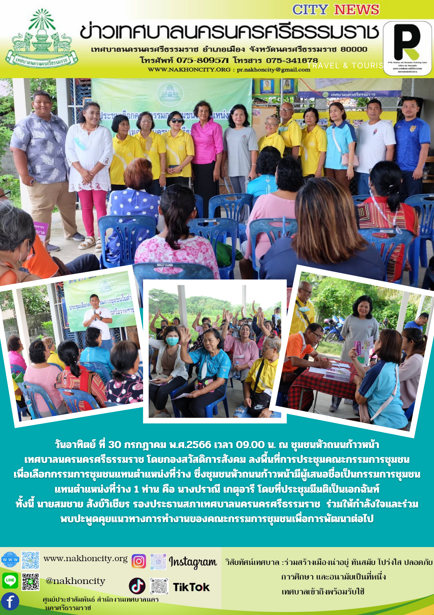 | เทศบาลนครนครศรีธรรมราช โดยกองสวัสดิการสังคม ลงพื้นที่การประชุมคณะกรรมการชุมชนหัวถนนก้าวหน้า เพื่อเลือกกรรมการชุมชนแทนตำแหน่งที่ว่าง |
