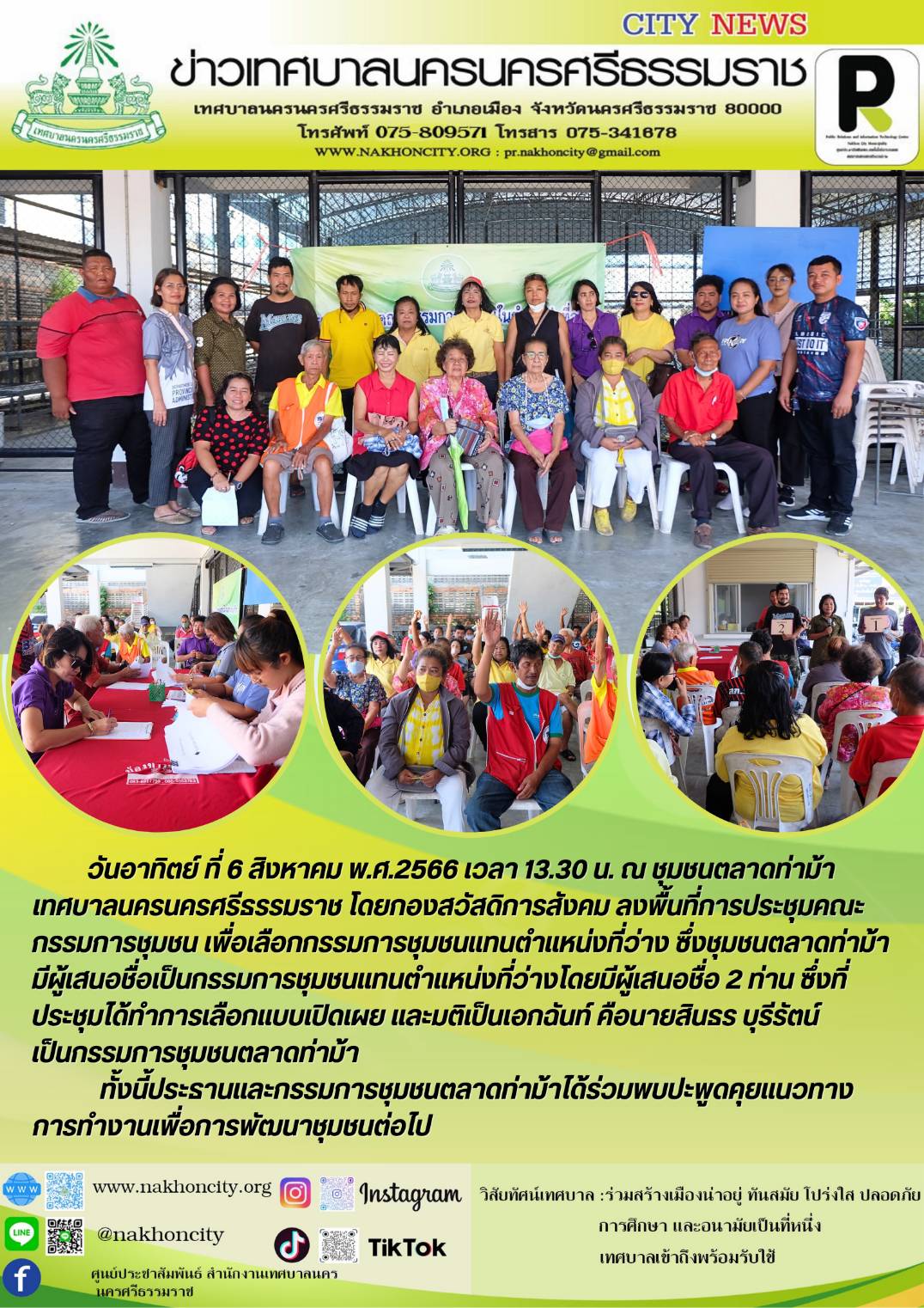 | เทศบาลนครนครศรีธรรมราช โดยกองสวัสดิการสังคม ลงพื้นที่การประชุมคณะกรรมการชุมชนตลาดท่าม้า เพื่อเลือกกรรมการชุมชนแทนตำแหน่งที่ว่าง |