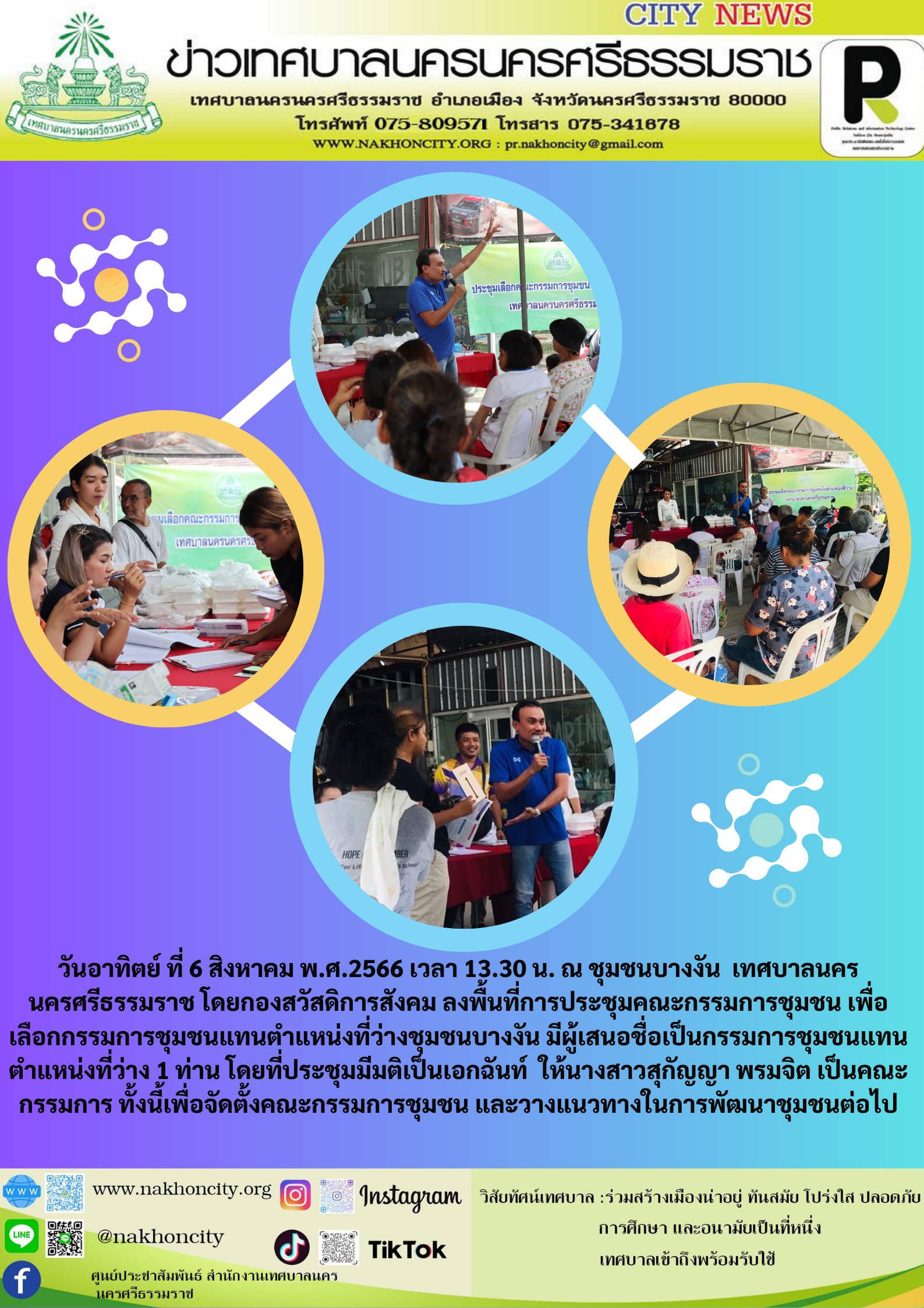 | เทศบาลนครนครศรีธรรมราช โดยกองสวัสดิการสังคม ลงพื้นที่การประชุมคณะกรรมการชุมชนบางงัน เพื่อเลือกกรรมการชุมชนแทนตำแหน่งที่ว่าง |