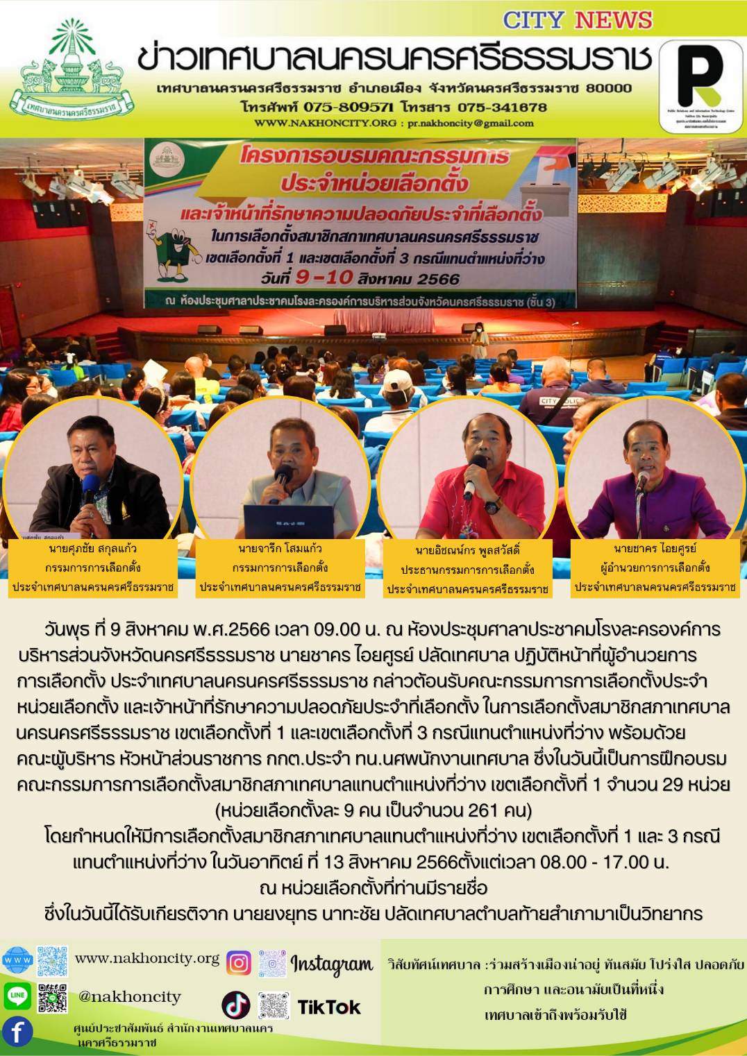 | วันพุธ ที่ 9 สิงหาคม พ.ศ.2566 เวลา 09.00 น. ณ ห้องประชุมศาลาประชาคมโรงละครองค์การบริหารส่วนจังหวัดนครศรีธรรมราช นายชาคร ไอยศูรย์ ปลัดเทศบาล ปฏิบัติหน้าที่ผู้อำนวยการการเลือกตั้ง ประจำเทศบาลนครนครศรีธรรมราช กล่าวต้อนรับคณะกรรมการการเลือกตั้งประจำหน่วยเลือกตั้ง และเจ้าหน้าที่รักษาความปลอดภัยประจำที่เลือกตั้ง ในการเลือกตั้งสมาชิกสภาเทศบาลนครนครศรีธรรมราช เขตเลือกตั้งที่ 1 และเขตเลือกตั้งที่ 3 กรณีแทนตำแหน่งที่ว่าง พร้อมด้วย คณะผู้บริหาร หัวหน้าส่วนราชการ กกต.ประจำ ทน.นศ พนักงานเทศบาล ซึ่งในวันนี้เป็นการฝึกอบรมคณะกรรมการการเลือกตั้งสมาชิกสภาเทศบาลแทนตำแหน่งที่ว่าง เขตเลือกตั้งที่ 1 จำนวน 29 หน่วย (หน่วยเลือกตั้งละ 9 คน เป็นจำนวน 261 คน) โดยกำหนดให้มีการเลือกตั้งสมาชิกสภาเทศบาลแทนตำแหน่งที่ว่าง เขตเลือกตั้งที่ 1 และ 3 กรณีแทนตำแหน่งที่ว่าง ในวันอาทิตย์ ที่ 13 สิงหาคม 2566 ตั้งแต่เวลา 08.00 - 17.00 น. ณ หน่วยเลือกตั้งที่ท่านมีรายชื่อ ซึ่งในวันนี้ได้รับเกียรติจาก นายยงยุทธ นาทะชัย ปลัดเทศบาลตำบลท้ายสำเภามาเป็นวิทยากร ................ ภาพ//ข่าว//จันทร์จิรา ตรวจทาน//ฐิตินันท์ |