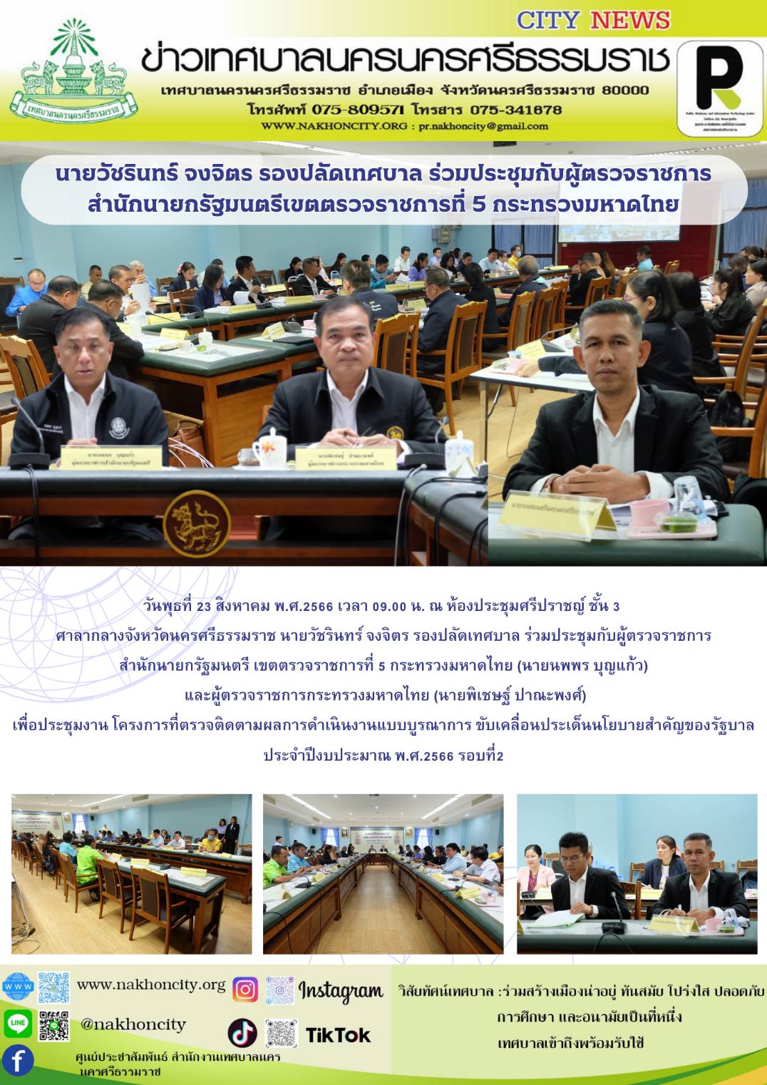 | วันพุธที่ 23 สิงหาคม พ.ศ.2566 เวลา 09.00 น. ณ ห้องประชุมศรีปราชญ์ ชั้น 3 ศาลากลางจังหวัดนครศรีธรรมราช นายวัชรินทร์ จงจิตร รองปลัดเทศบาล ร่วมประชุมกับผู้ตรวจราชการสำนักนายกรัฐมนตรี เขตตรวจราชการที่ 5 กระทรวงมหาดไทย (นายนพพร บุญแก้ว) และผู้ตรวจราชการกระทรวงมหาดไทย (นายพิเชษฐ์ ปาณะพงศ์) |