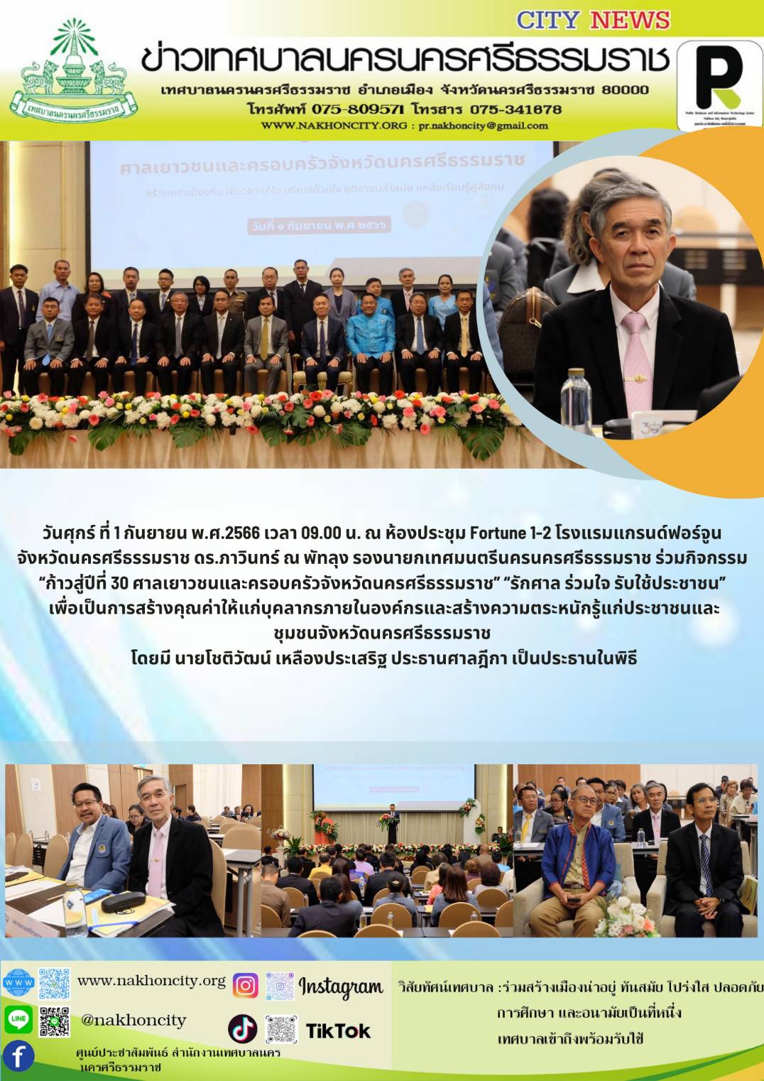 | วันศุกร์ ที่ 1 กันยายน พ.ศ.2566 เวลา 09.00 น. ณ ห้องประชุม Fortune 1-2 โรงแรมแกรนด์ฟอร์จูน จังหวัดนครศรีธรรมราช ดร.ภาวินทร์ ณ พัทลุง รองนายกเทศมนตรีนครนครศรีธรรมราช ร่วมกิจกรรม “ก้าวสู่ปีที่ 30 ศาลเยาวชนและครอบครัวจังหวัดนครศรีธรรมราช”  “รักศาล ร่วมใจ รับใช้ประชาชน” เพื่อเป็นการสร้างคุณค่าให้แก่บุคลากรภายในองค์กรและสร้างความตระหนักรู้แก่ประชาชนและชุมชนจังหวัดนครศรีธรรมราช  |