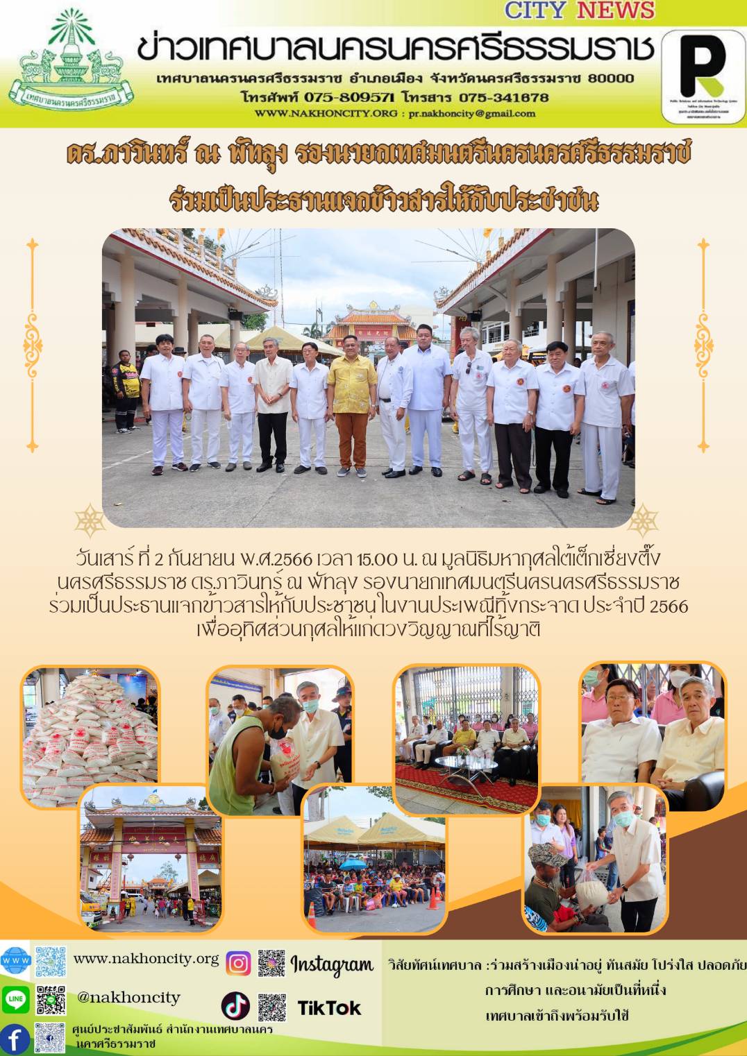 | ดร.ภาวินทร์ ณ พัทลุง รองนายกเทศมนตรีนครนครศรีธรรมราช ร่วมเป็นประธานแจกข้าวสารให้กับประชาชน |