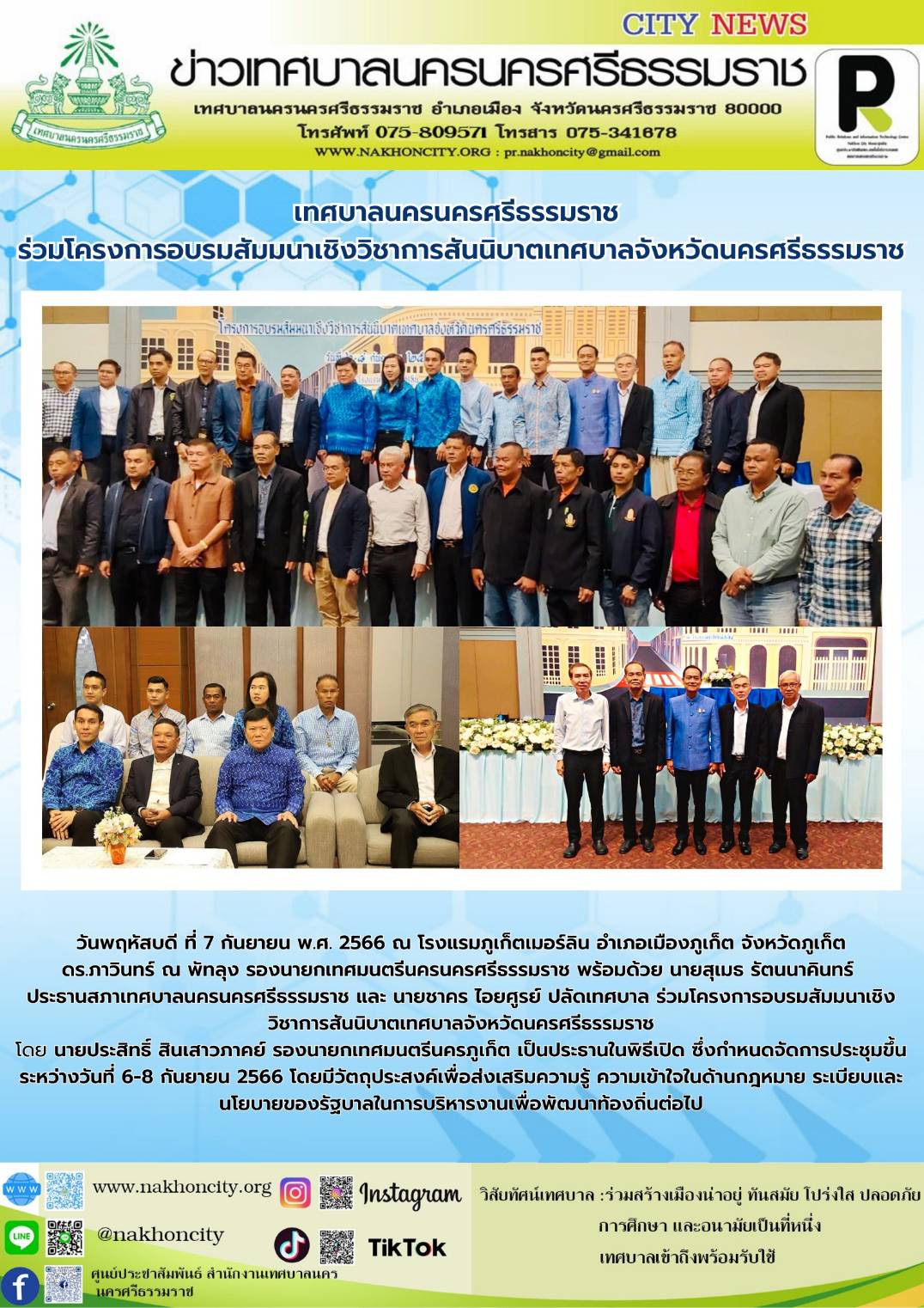 | เทศบาลนครนครศรีธรรมราช ร่วมโครงการอบรมสัมมนาเชิงวิชาการสันนิบาตเทศบาลจังหวัดนครศรีธรรมราช |