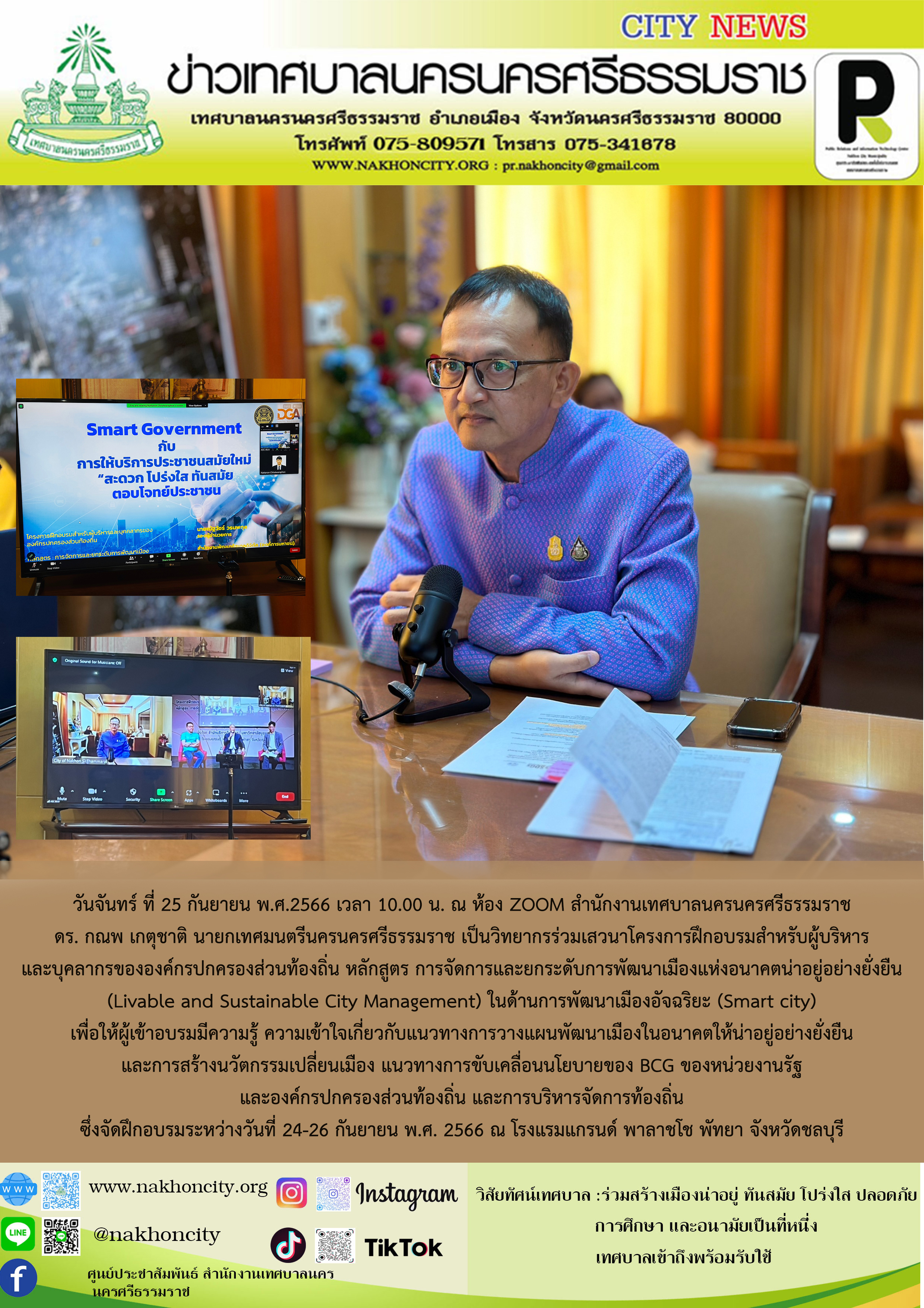 | วันจันทร์ ที่ 25 กันยายน พ.ศ.2566 เวลา 10.00 น. ณ ห้อง ZOOM สำนักงานเทศบาลนครนครศรีธรรมราช ภาพ//ข่าว//ไกรสิทธิ |