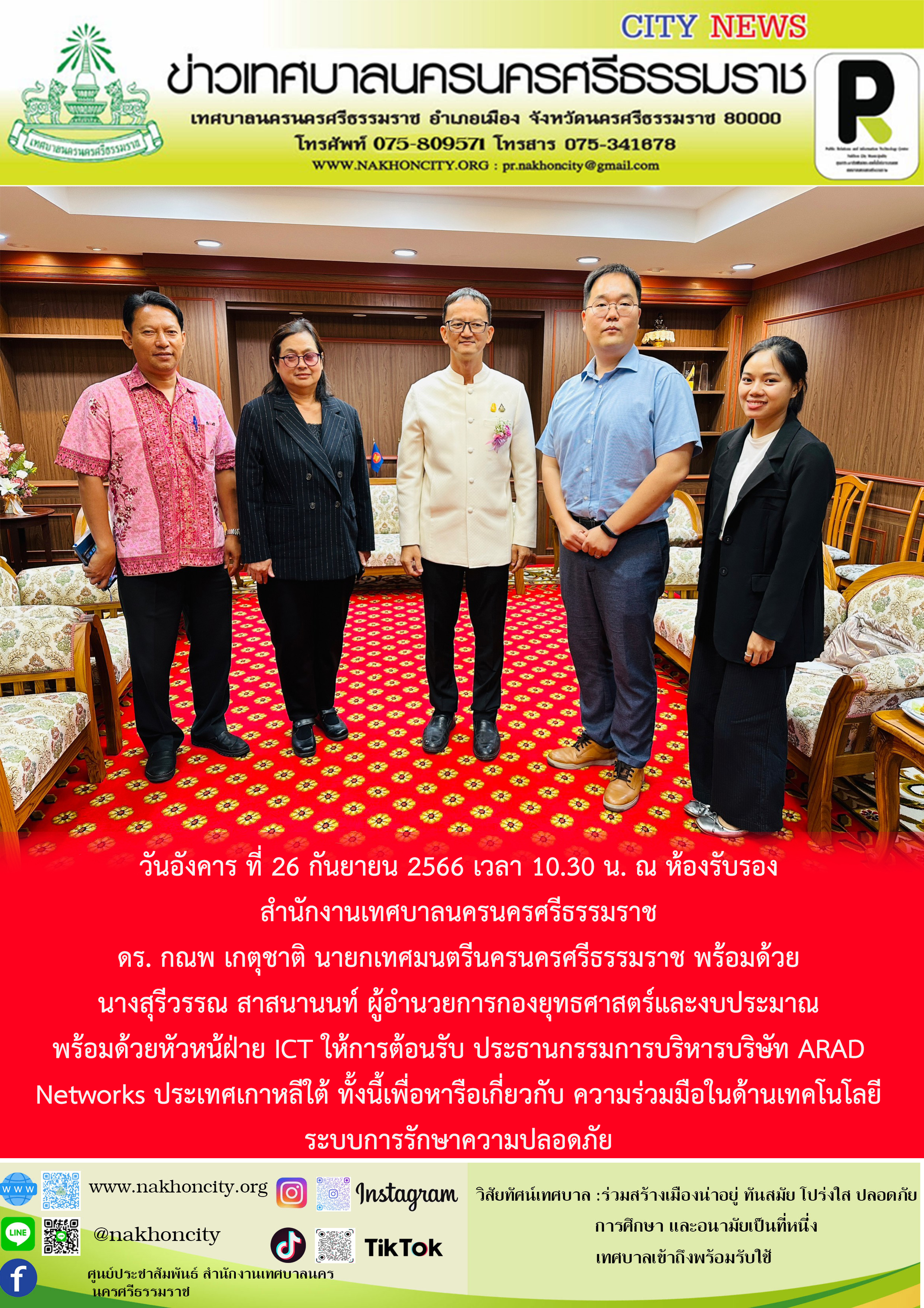 | ดร. กณพ เกตุชาติ นายกเทศมนตรีนครนครศรีธรรมราช ต้อนรับประธานกรรมการบริหารบริษัท ARAD Networks ประเทศเกาหลีใต้ |