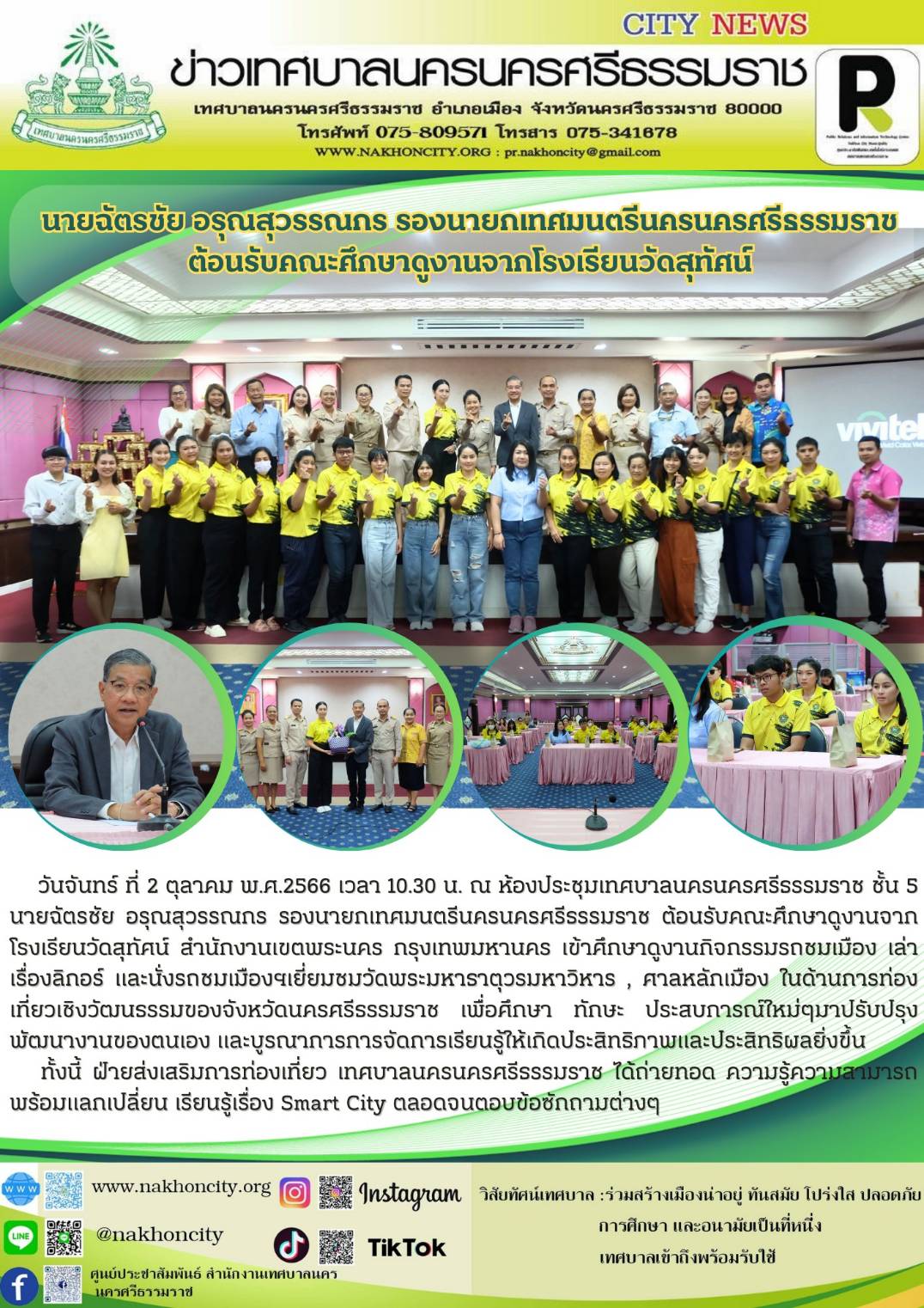 | นายฉัตรชัย อรุณสุวรรณกร รองนายกเทศมนตรีนครนครศรีธรรมราช ต้อนรับคณะศึกษาดูงานจากโรงเรียนวัดสุทัศน์ |