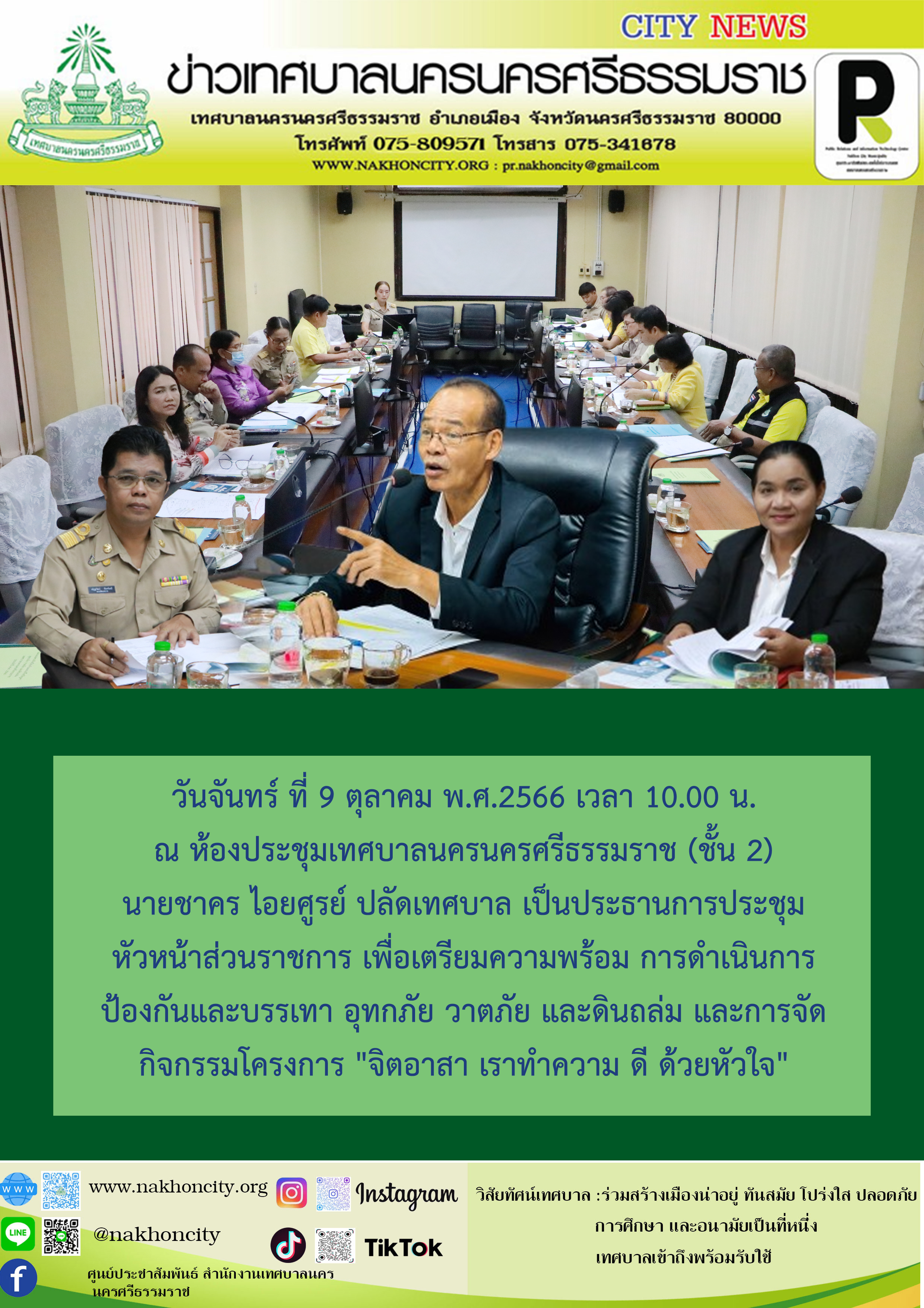 | วันจันทร์ ที่ 9 ตุลาคม พ.ศ.2566 เวลา 10.00 น. ณ ห้องประชุมเทศบาลนครนครศรีธรรมราช (ชั้น 2) ภาพ//ข่าว//ไกรสิทธิ |