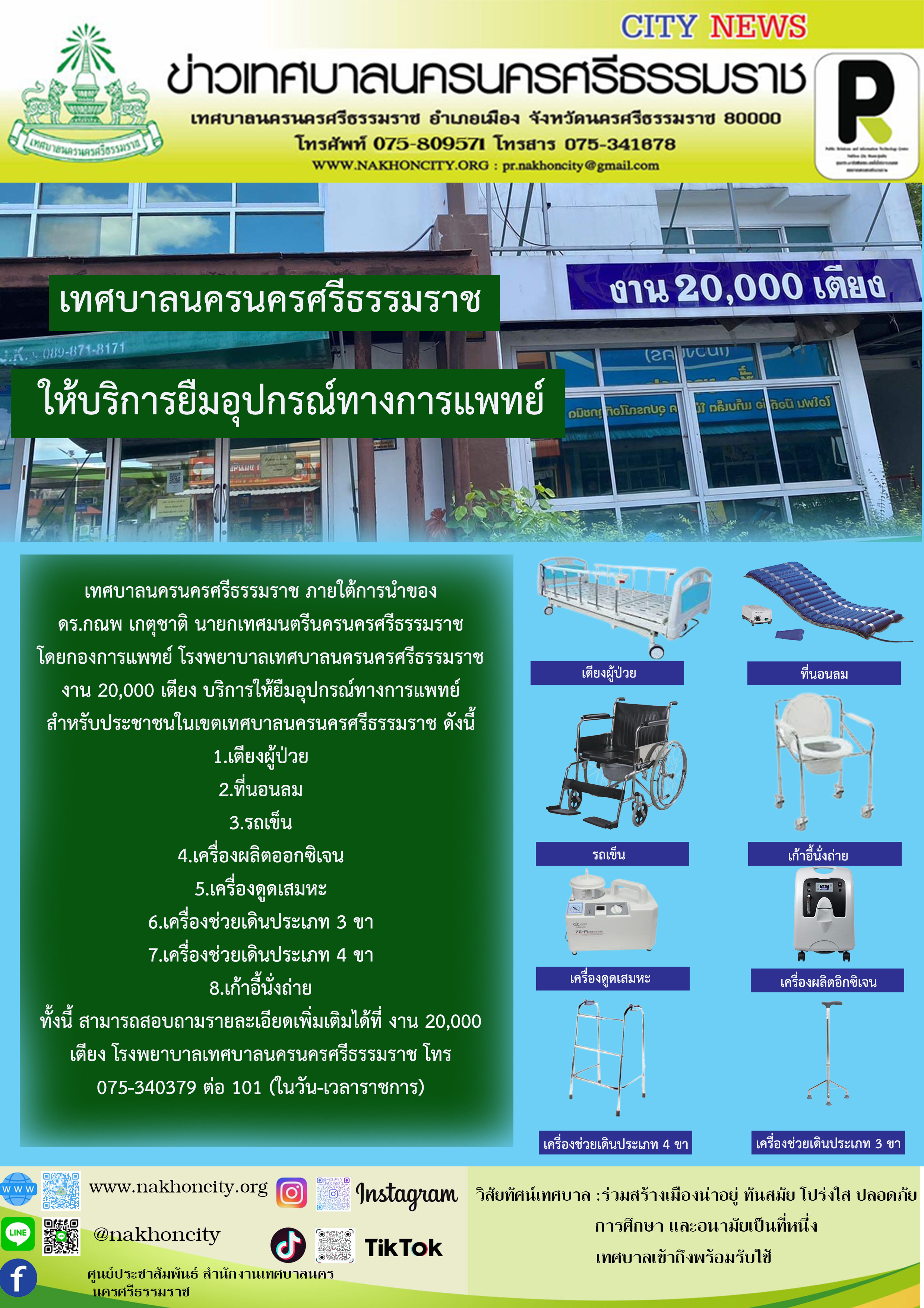 | เทศบาลนครนครศรีธรรมราช ให้บริการยืมอุปกรณ์ทางการแพทย์ |