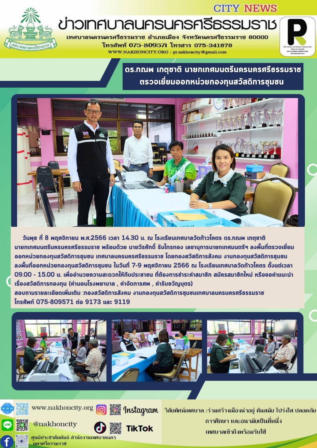| ดร.กณพ เกตุชาติ นายกเทศมนตรีนครนครศรีธรรมราช ลงพื้นที่ตรวจเยี่ยมออกหน่วยกองทุนสวัสดิการชุมชน |