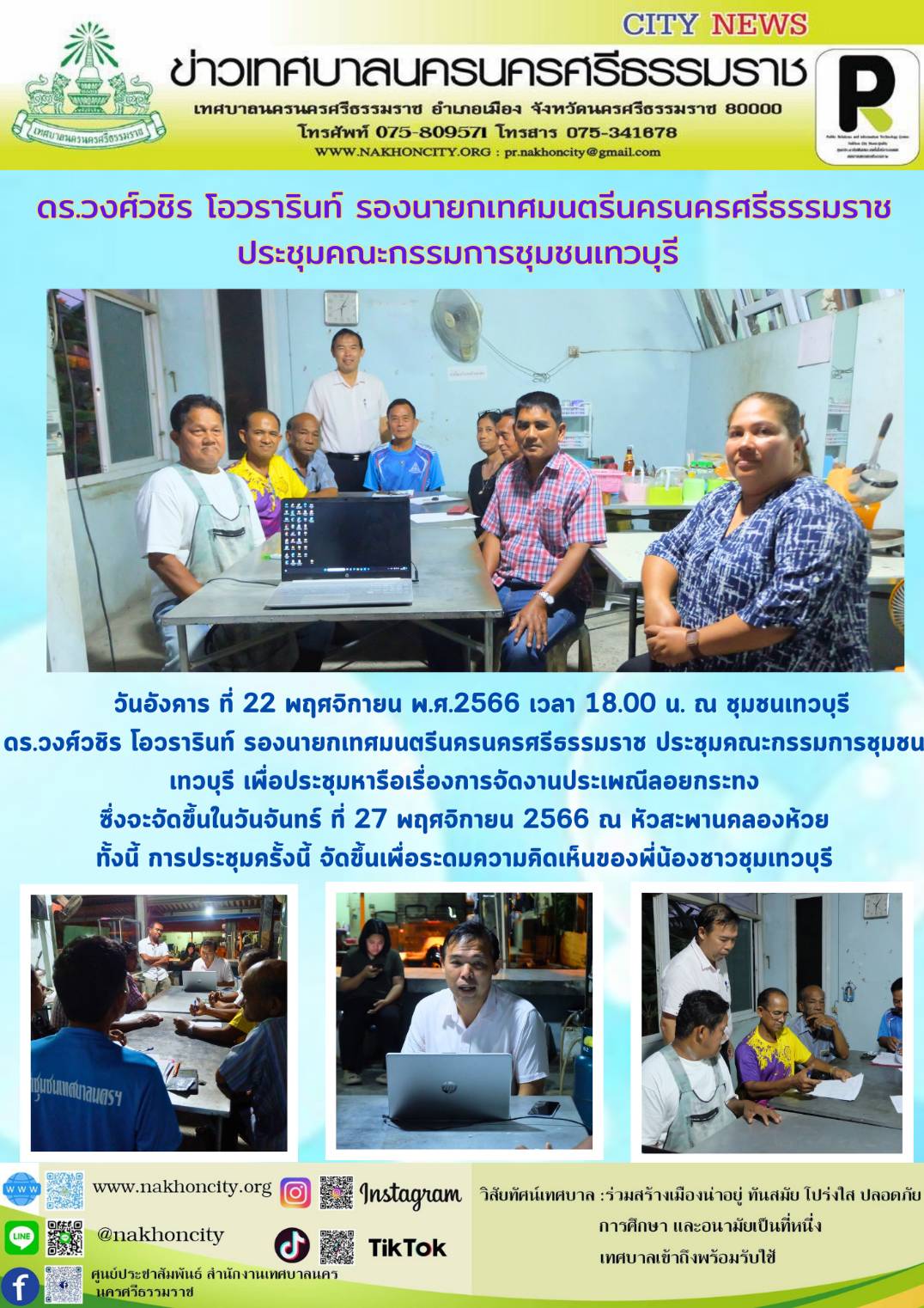 | ดร.วงศ์วชิร โอวรารินท์ รองนายกเทศมนตรีนครนครศรีธรรมราช ประชุมคณะกรรมการชุมชนเทวบุรี |