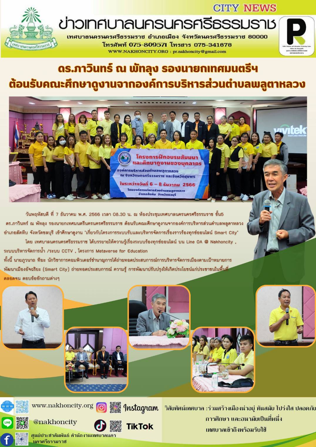 | ดร.ภาวินทร์ ณ พัทลุง รองนายกเทศมนตรีนครนครศรีธรรมราช ต้อนรับคณะศึกษาดูงานจากองค์การบริหารส่วนตำบลพลูตาหลวง |