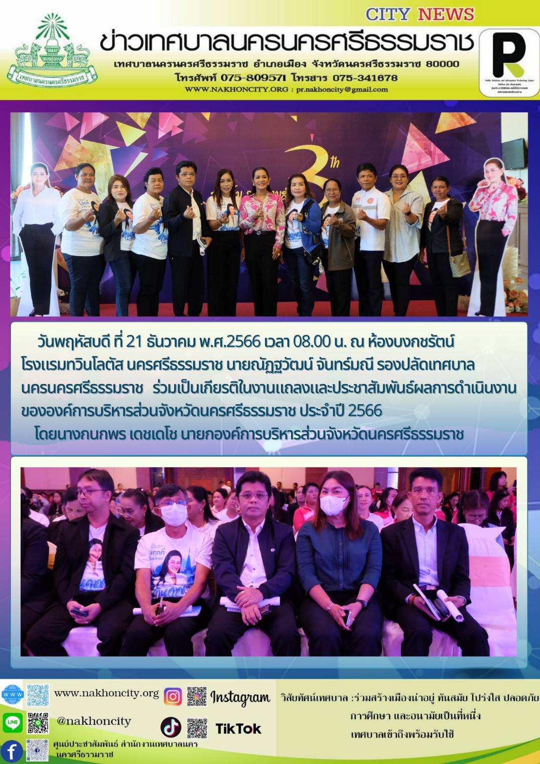 | นายณัฏฐวัฒน์ จันทร์มณี รองปลัดเทศบาล นครนครศรีธรรมราช ร่วมเป็นเกียรติในงานแถลงและประชาสัมพันธ์ผลการดำเนินงานขององค์การบริหารส่วนจังหวัดนครศรีธรรมราช ประจำปี 2566 |