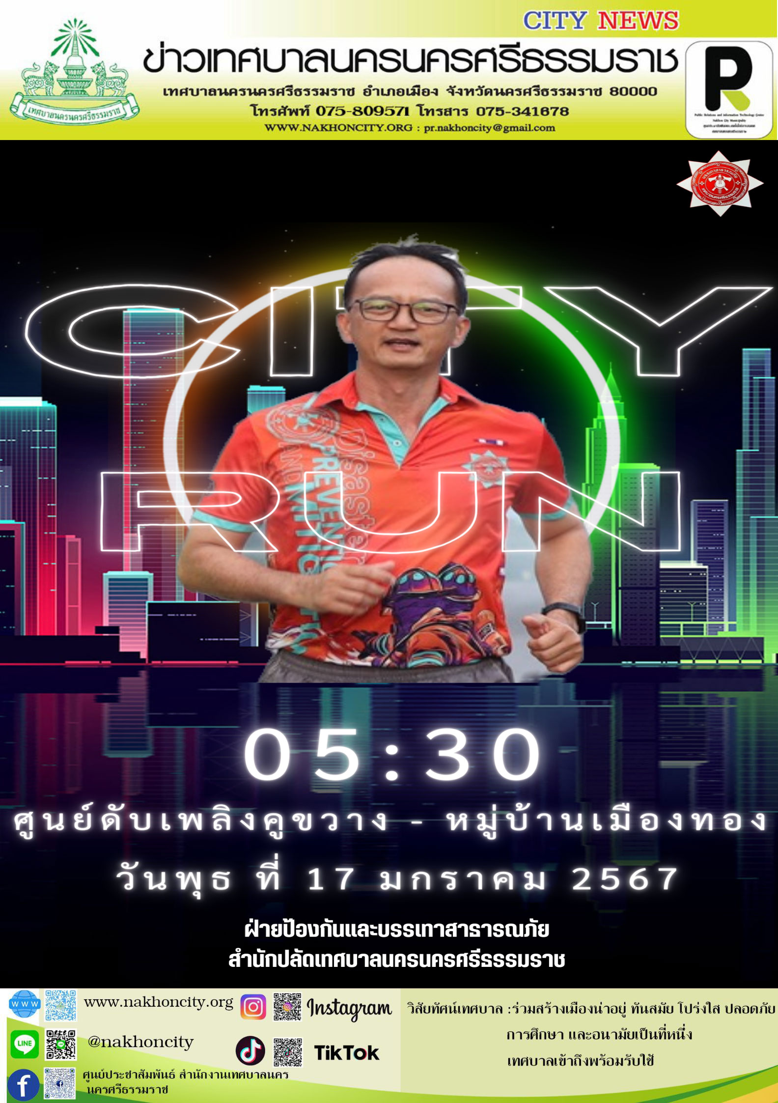 | เทศบาลนครนครศรีธรรมราช เชิญชวนประชาชน ร่วมวิ่งออกกำลังกาย ทุกเช้าวันพุธ กับกิจกรรม "City Run" |