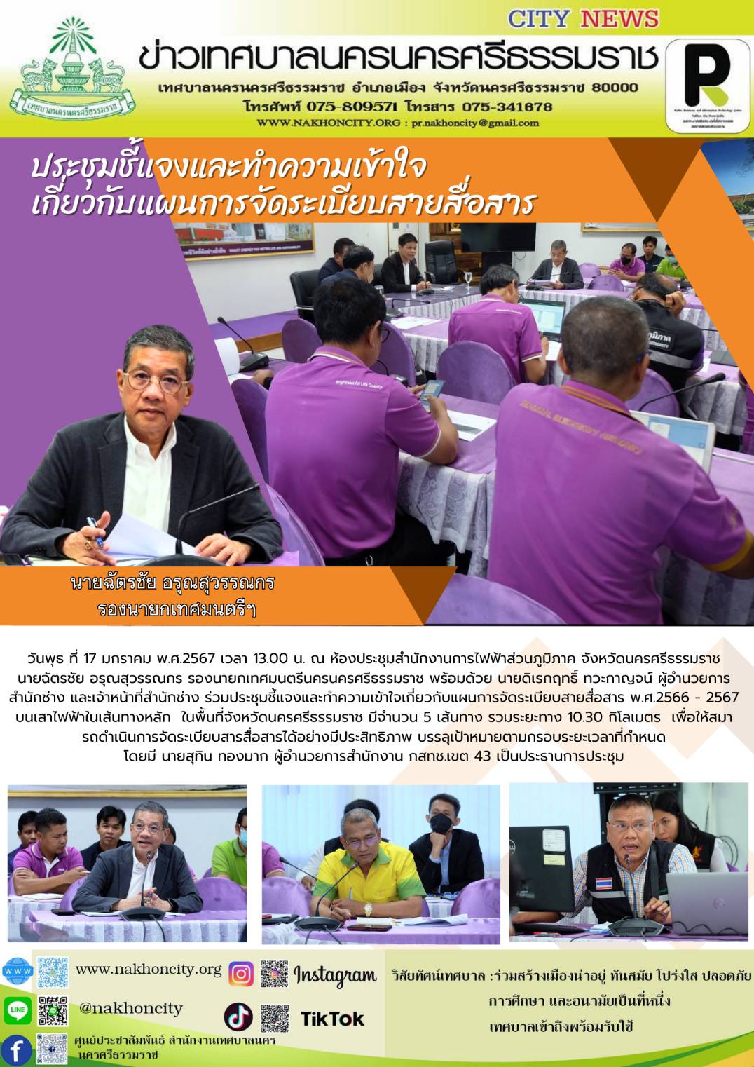 | นายฉัตรชัย อรุณสุวรรณกร รองนายกเทศมนตรีนครนครศรีธรรมราช ร่วมประชุมชี้แจงและทำความเข้าใจเกี่ยวกับแผนการจัดระเบียบสายสื่อสาร |