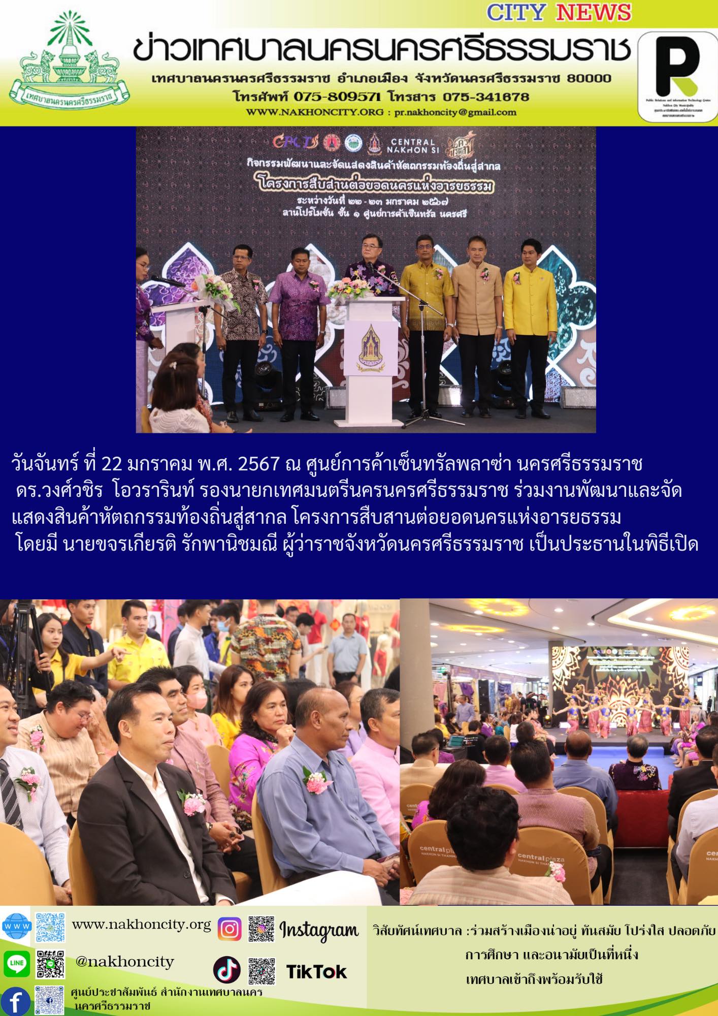 | วันจันทร์ ที่ 22 มกราคม พ.ศ. 2567 ณ ศูนย์การค้าเซ็นทรัลพลาซ่า นครศรีธรรมราช ดร.วงศ์วชิร โอวรารินท์ รองนายกเทศมนตรีนครนครศรีธรรมราช ร่วมงานพัฒนาและจัดแสดงสินค้าหัตถกรรมท้องถิ่นสู่สากล โครงการสืบสานต่อยอดนครแห่งอารยธรรม โดยมี นายขจรเกียรติ รักพานิชมณี ผู้ว่าราชจังหวัดนครศรีธรรมราช เป็นประธานในพิธีเปิด สล็อต สล็อตออนไลน์ thaicasinobin |