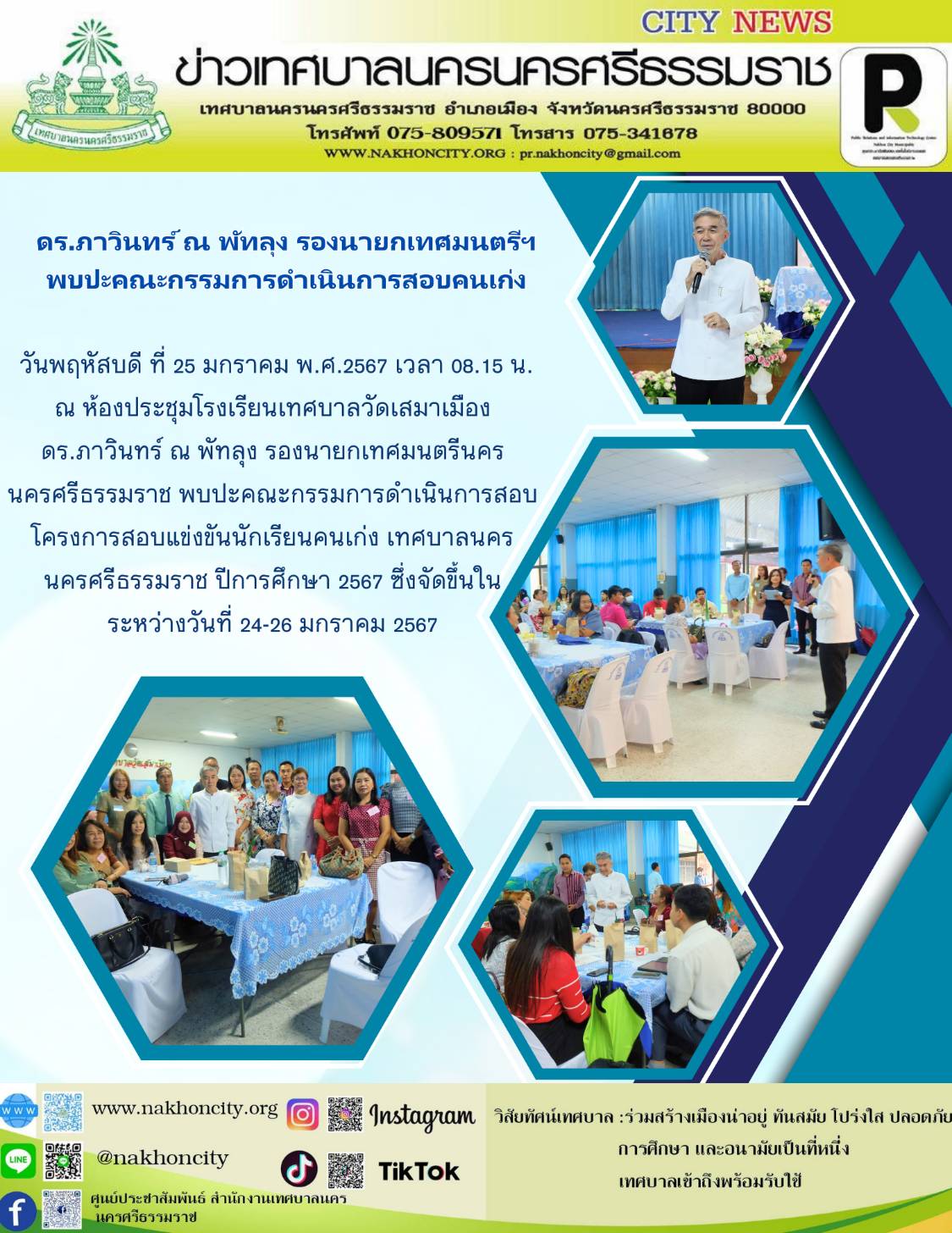 | ดร.ภาวินทร์ ณ พัทลุง รองนายกเทศมนตรีนครนครศรีธรรมราช พบปะคณะกรรมการดำเนินการสอบ โครงการสอบแข่งขันนักเรียนคนเก่ง |