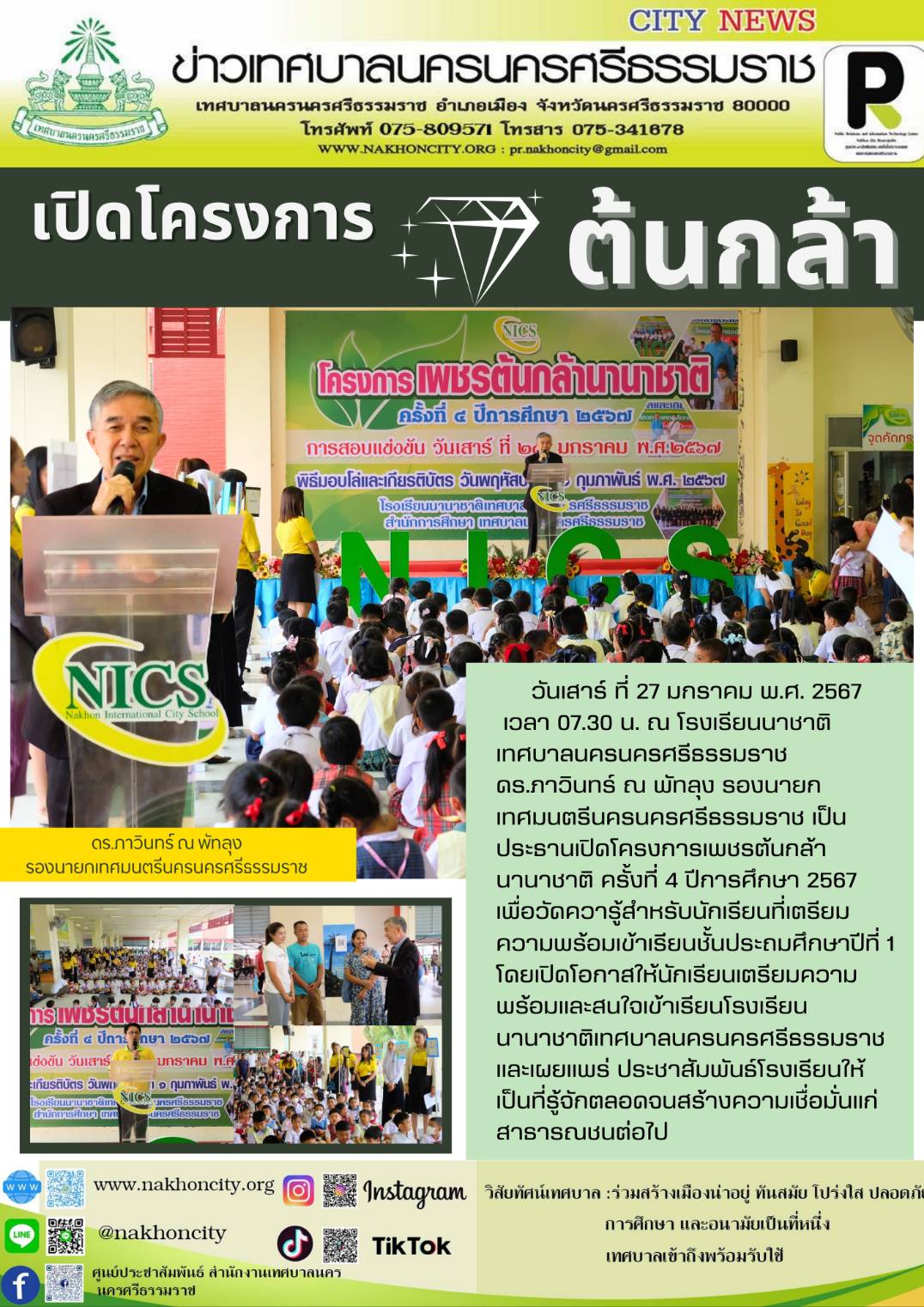 | ดร.ภาวินทร์ ณ พัทลุง รองนายกเทศมนตรีนครนครศรีธรรมราช เป็นประธานเปิดโครงการเพชรต้นกล้านานาชาติ ครั้งที่ 4 ปีการศึกษา 2567 |