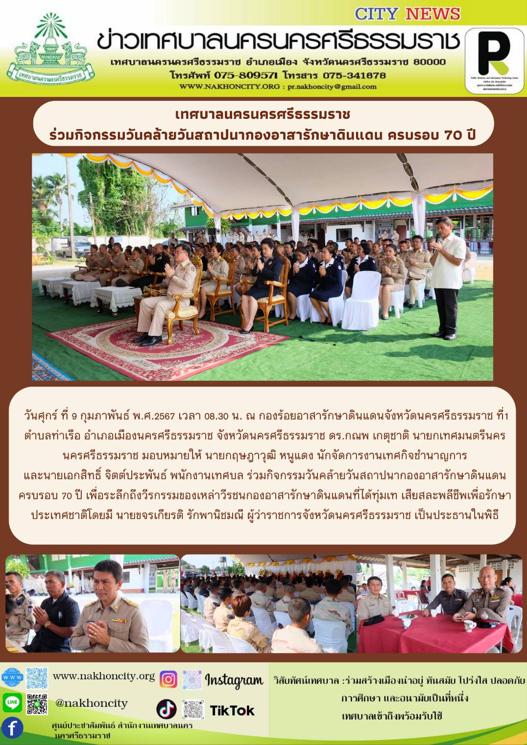 | เทศบาลนครนครศรีธรรมราช ร่วมกิจกรรมวันคล้ายวันสถาปนากองอาสารักษาดินแดน ครบรอบ 70 ปี |