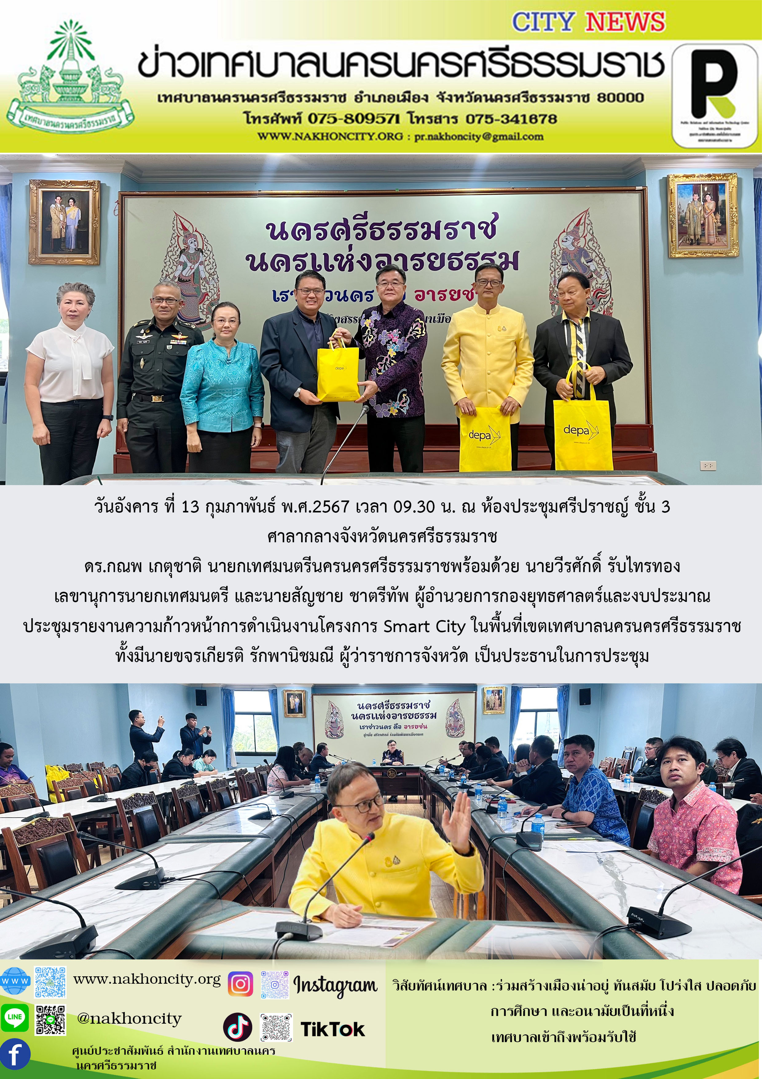 | ดร.กณพ เกตุชาติ นายกเทศมนตรีนครนครศรีธรรมราช ประชุมรายงานความก้าวหน้าการดำเนินงานโครงการ Smart City ในพื้นที่เขตเทศบาลนครนครศรีธรรมราช |