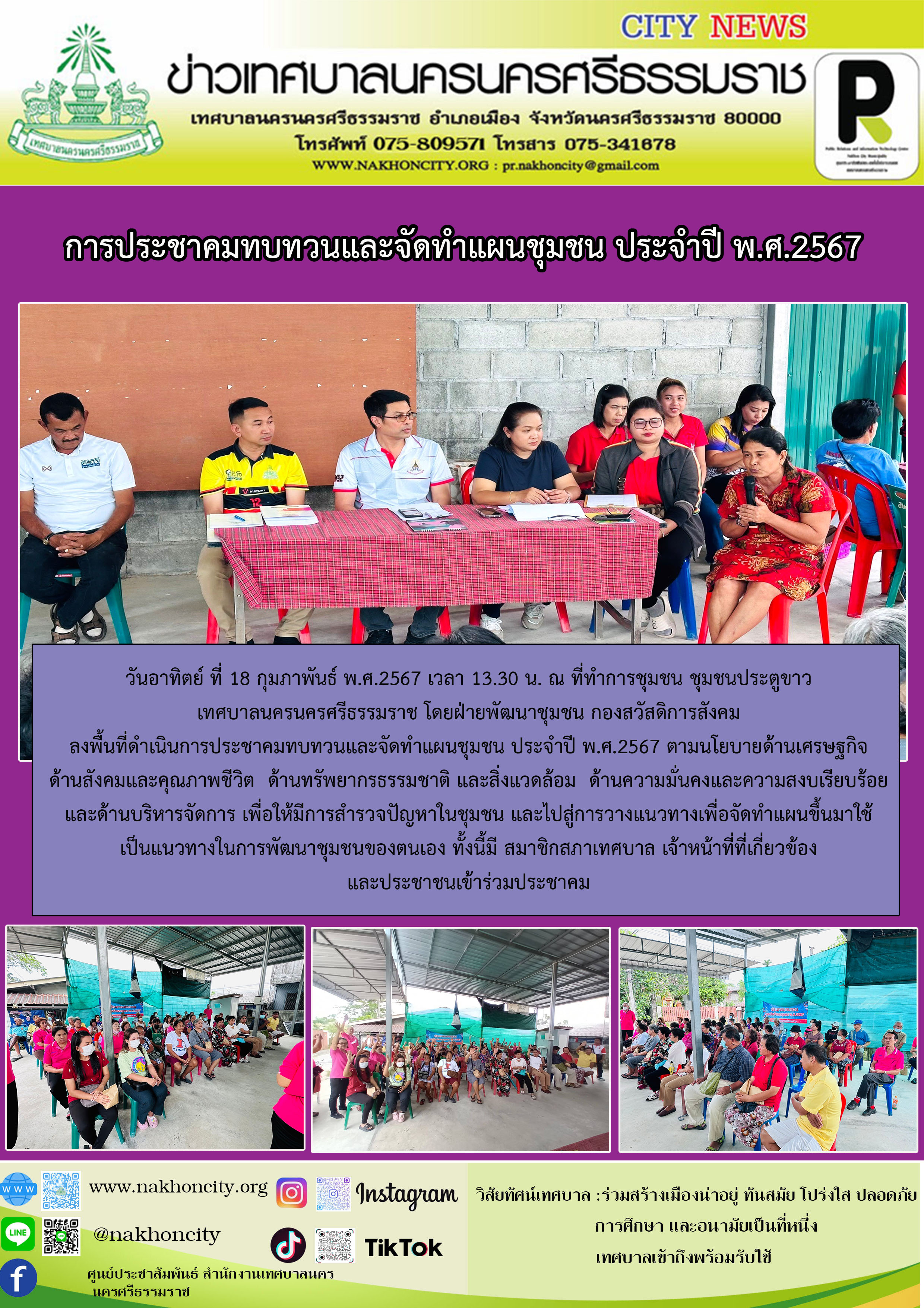 | เทศบานนครนครศรีธรรมราช ลงพื้นที่ดำเนินการประชาคมทบทวน และจัดทำแผนชุมชน ประจำปี พ.ศ.2567 |